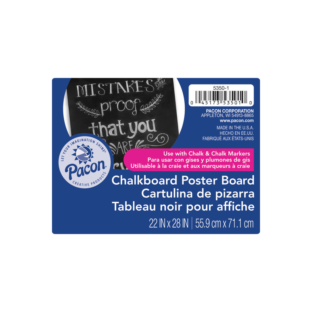 Specially coated Black Poster Board designed for use with chalk and chalk markers. Durable 18 pt. board has a Dark Black coating that provides great contrast with white and colored chalk. Wipes clean with damp cloth, or felt eraser creates a worn chalkboard-look. Easy to customize for signs, posters and photography props. Acid free. Recyclable. Each board is 22" x 28". Includes 25 sheets.