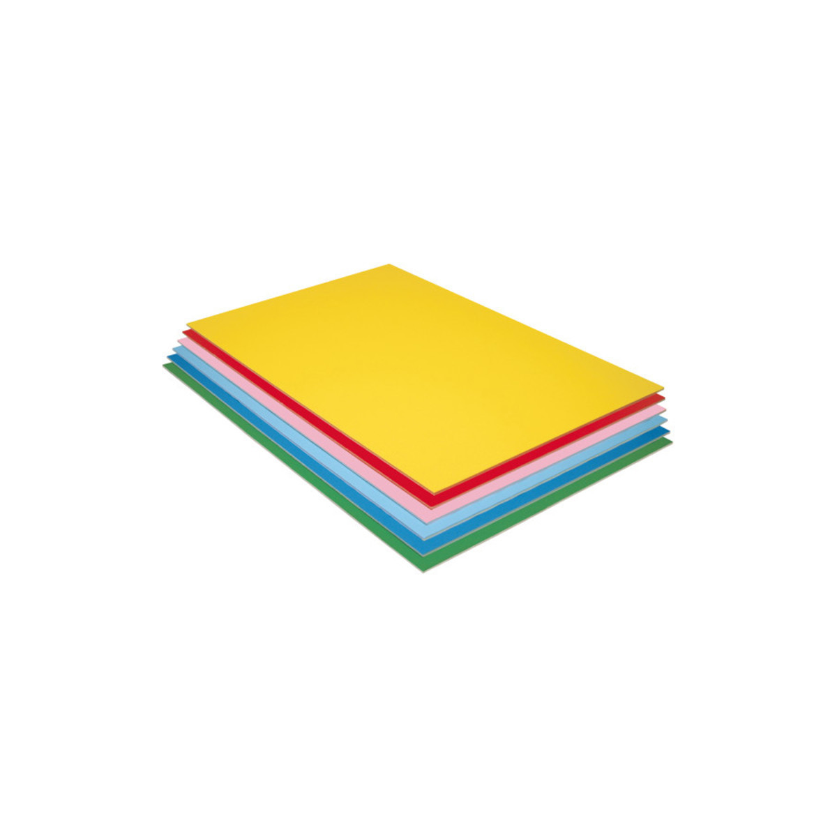Polystyrene extruded foam laminated between two sheets of paper to form a lightweight but strong and rigid surface. Ideal for crafts, school projects, framing, mounting, displays, posters and exhibits. Easy-to-cut sheets have a smooth surface, and accept a wide range of media including paints. Sheets are 3/16" thick. Pack of 12, 2 sheets each of six Fadeless® colors: Canary, Flame, Pink, Lite Blue, Brite Blue and Apple Green. Acid free.