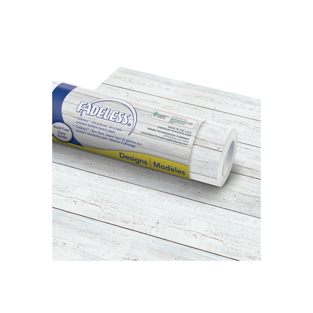 Fadeless® Bulletin Board Art Paper, White Shiplap, 48" x 50', 1 Roll