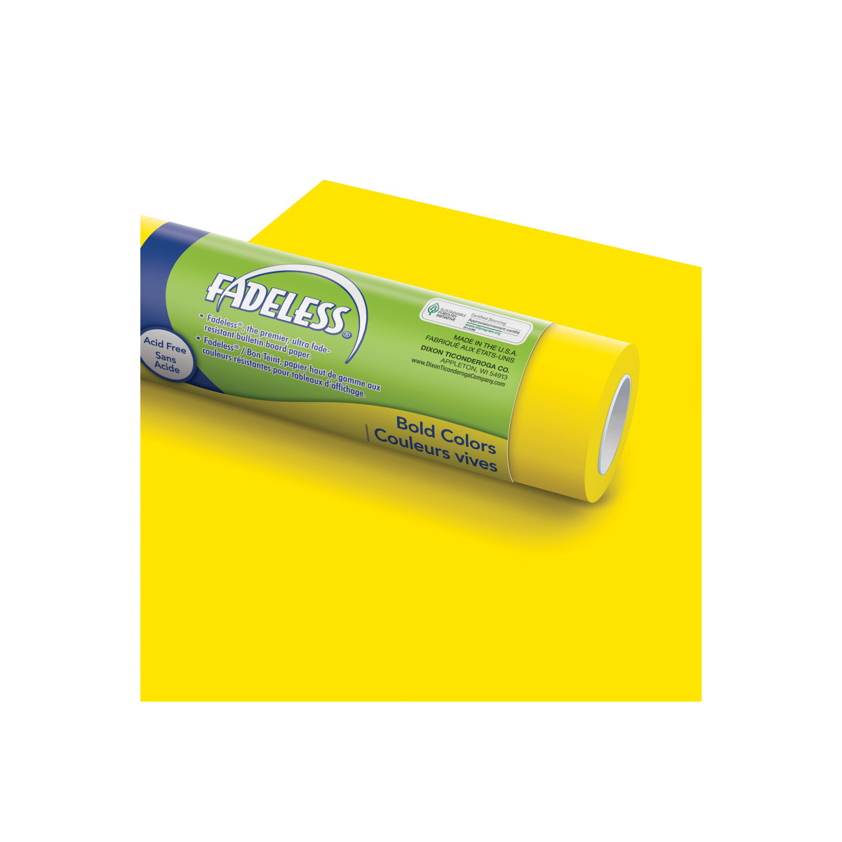 Let Fadeless® spark your bulletin board and classroom décor ideas! Create fun and inviting classrooms with this premier, ultra fade-resistant paper. Use on bulletin boards, doors, file cabinets, and more. Durable construction and acid-free qualities create long-lasting displays. Design or color on one side, white on back. From backdrops to 3D paper sculptures, Fadeless is the ultimate choice. Be creative, be colorful, be bold with Fadeless papers. Also perfect for backgrounds, displays, table skirting, and party decorations. Recyclable. Roll measures 48" x 50'.