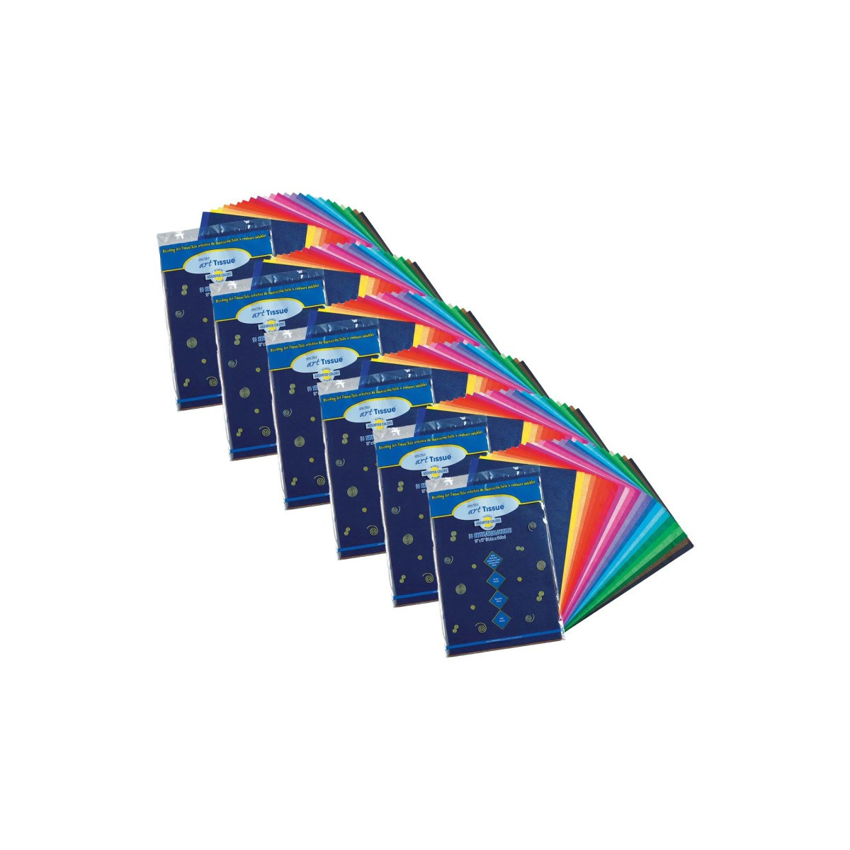 Spectra® Deluxe Bleeding Art Tissue™ is a fine-quality deluxe-grade tissue that bleeds, making it easy to create arts and crafts projects with a beautiful watercolor look. Rich, vibrant colors blend when moistened to create exciting artistic effects. Wet with a brush and wash beautiful, translucent color on to the paper. Overlap two colors and watch them blend. Or, add glue to the water to hold specific shapes in place and create magnificent, multi-layered effects. The high-quality tissue can withstand cutting, crinkling and folding without tearing. This 25 color assortment includes: National Blue, Dark Pink, Canary, Goldenrod, Orange, Chinese, Scarlet, National Red, Cerise, Baby Pink, Blush Pink, Magenta, Orchid, Purple, Medium Blue, French Blue, Sky Blue, Azure Blue, Emerald Green, Apple Green, Spring Green, Leaf Green, Seal Brown, Black and White. Sheets measures 12" x 18". Each pack includes 50 sheets. Sold as 6 packs for a total of 300 sheets.