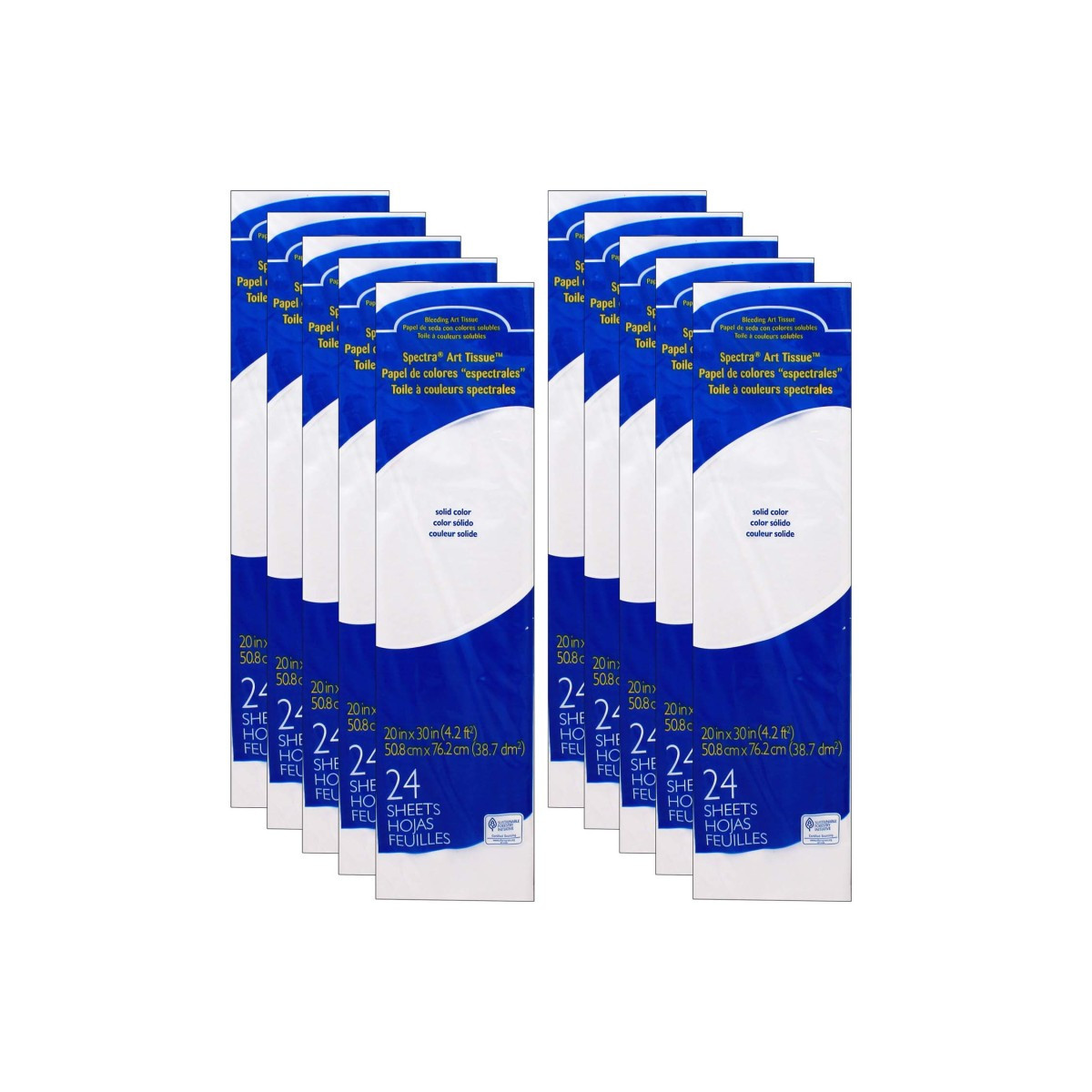 Spectra® Deluxe Bleeding Art Tissue™ is a fine-quality deluxe-grade tissue that bleeds, making it easy to create arts and crafts projects with a beautiful watercolor look. Rich, vibrant colors blend when moistened to create exciting artistic effects. Wet with a brush and wash beautiful, translucent color on to the paper. Overlap two colors and watch them blend. Or, add glue to the water to hold specific shapes in place and create magnificent, multi-layered effects. The high-quality tissue can withstand cutting, crinkling and folding without tearing. Sheets measures 20" x 30". Each pack includes 24 sheets. Sold as 10 packs for a total of 240 sheets.
