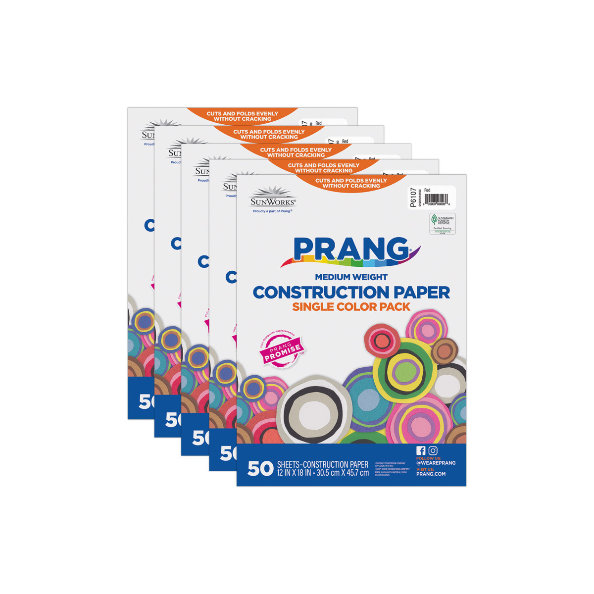 Prang® Medium Weight Groundwood Construction Paper provides the best value in school grade construction paper. It is the perfect solution for school projects and other arts and crafts. It has bright and consistent colors, is slightly textured and cuts and folds evenly without cracking. Recyclable. Measures 12" x 18". Each pack includes 50 sheets. Sold as 5 packs for a total of 250 sheets.