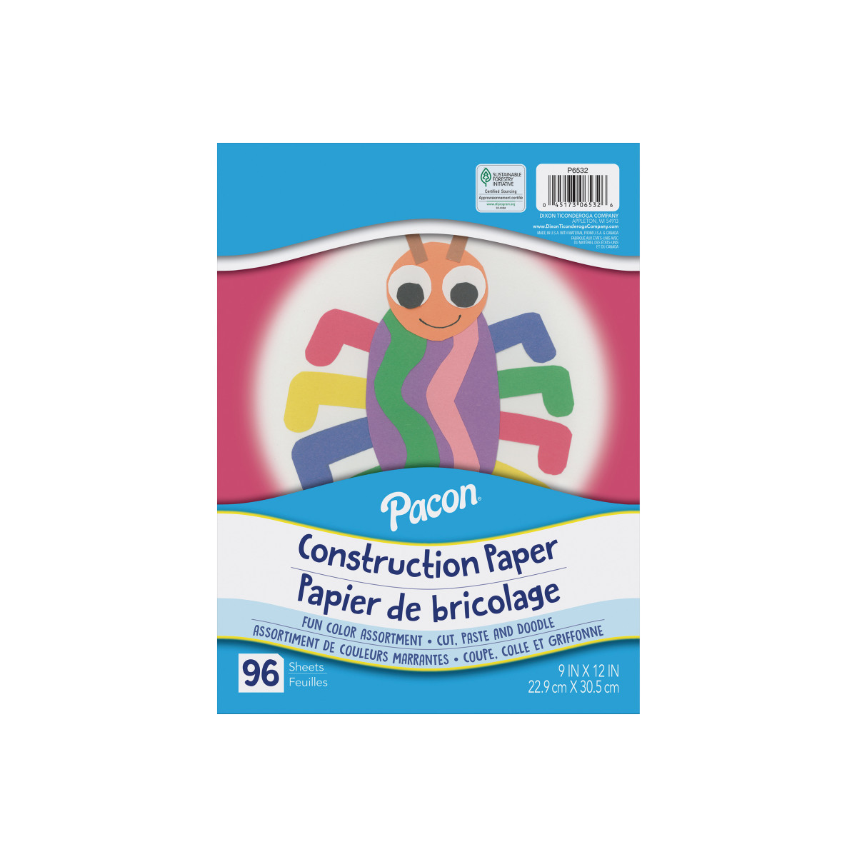 Lightweight construction paper assortment that is Ideal for cutting, pasting, doodling and drawing. Assorted colors. Recyclable. Measures 9" x 12". Each pack includes 96 sheets.