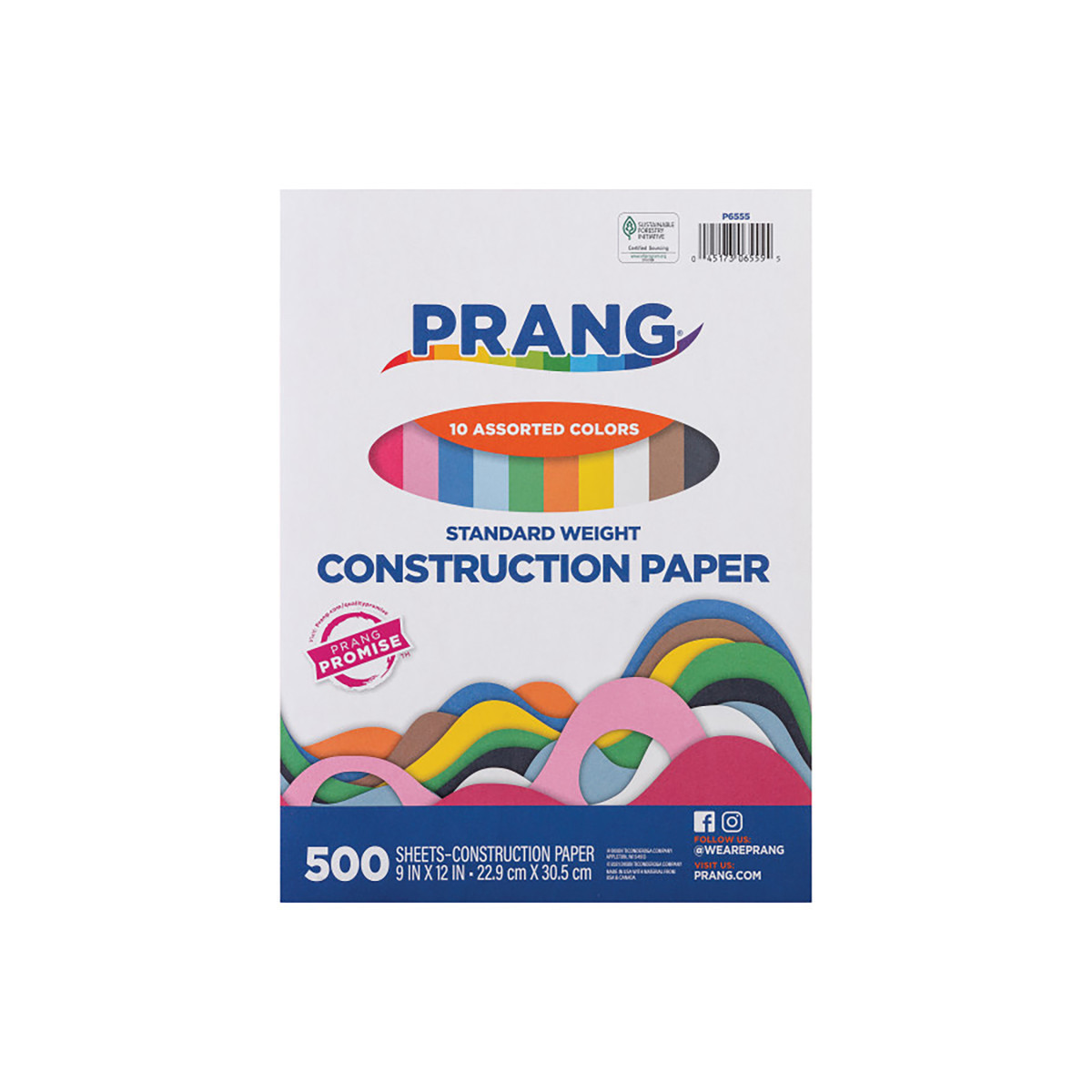 Prang® 10 color assortment is perfect for beginner arts and crafts, and ideal for young children. Colors include: White, Sky Blue, Blue, Pink, Scarlet, Orange, Brown, Yellow, Green, and Black. Works great for cutting, pasting, doodling and folding. Recyclable. Measures 9" x 12". Each pack includes 500 sheets.