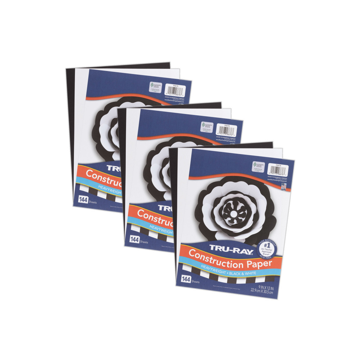 Heavyweight 100% vat-dyed sulphite with longer, stronger fibers. Tru-Ray® Construction Paper is tough enough to take scoring, folding and curling without cracking and tearing. Its superior fade-resistance keeps projects brighter and fresher longer. Black & White Assortment includes Black and White which are the most frequently used colors. Acid free for less fade. Recyclable. Measures 9" x 12". Each pack includes 144 sheets. Sold as 3 packs for a total of 432 sheets.