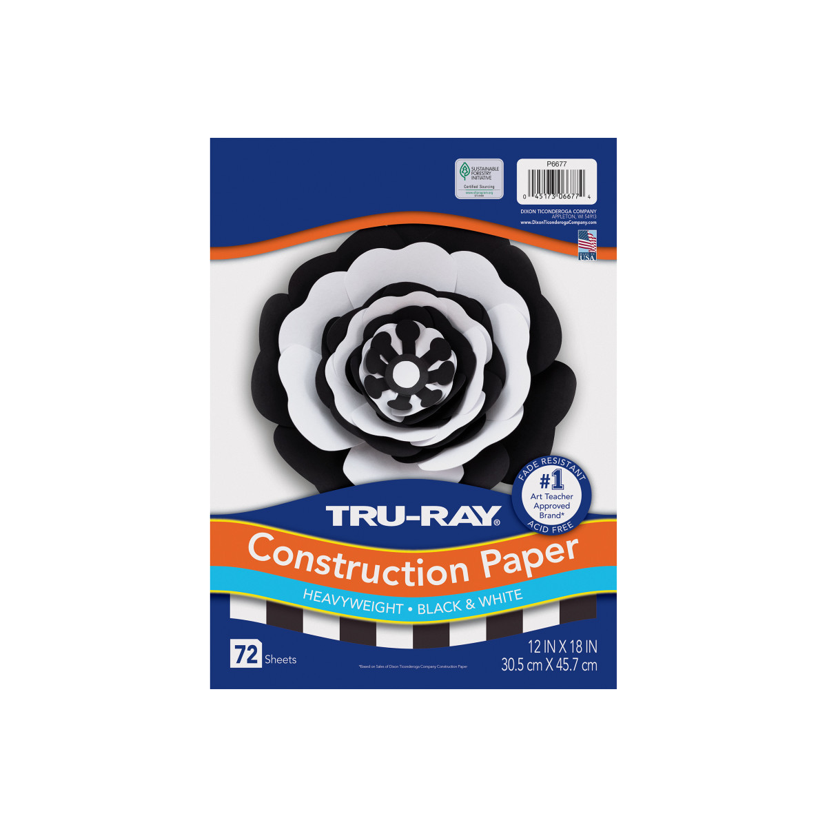 Heavyweight 100% vat-dyed sulphite with longer, stronger fibers. Tru-Ray® Construction Paper is tough enough to take scoring, folding and curling without cracking and tearing. Its superior fade-resistance keeps projects brighter and fresher longer. Black & White Assortment includes Black and White which are the most frequently used colors. Acid free for less fade. Recyclable. Measures 12" x 18". Each pack includes 72 sheets.