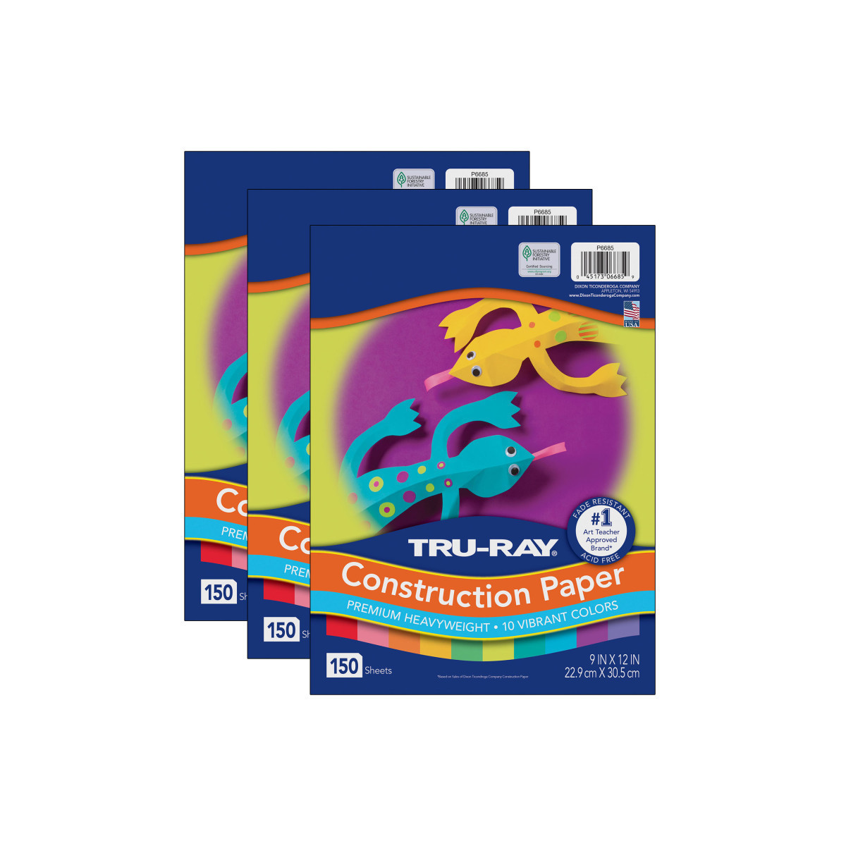 Heavyweight 100% vat-dyed sulphite with longer, stronger fibers. Tru-Ray® Construction Paper is tough enough to take scoring, folding and curling without cracking and tearing. Its superior fade-resistance keeps projects brighter and fresher longer. Colors include: Magenta, Festive Green, Turquoise, Brilliant Lime, Violet, Atomic Blue, Shocking Pink, Pumpkin, Gold and Festive Red. Acid free for less fade. 50% recycled fiber content and recyclable. Measures 9" x 12". Each pack includes 150 sheets. Sold as 3 packs for a total of 450 sheets.