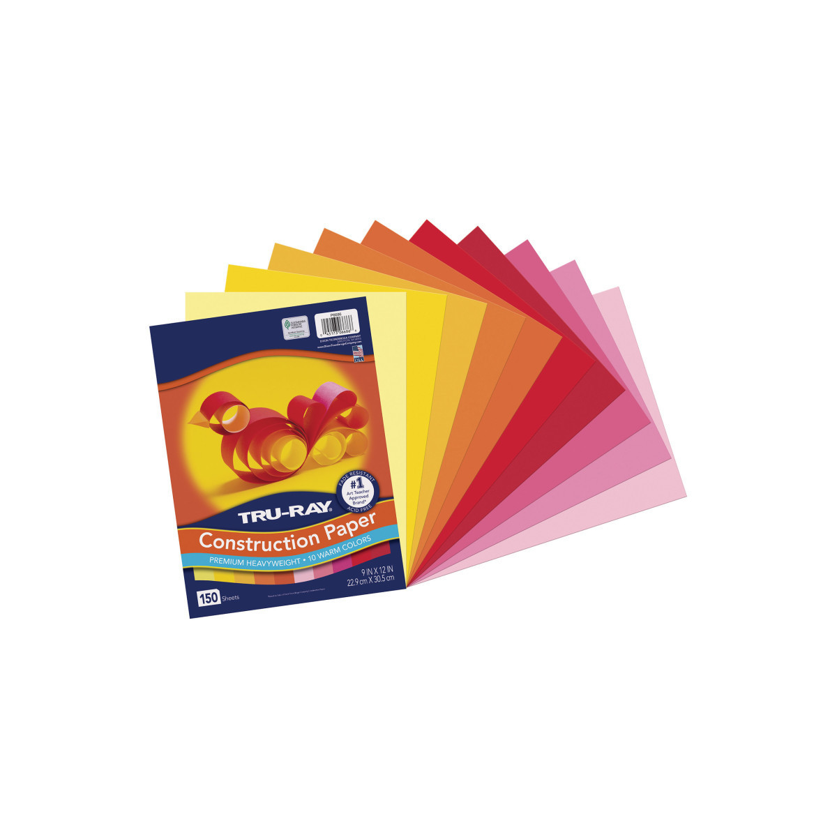Heavyweight 100% vat-dyed sulphite with longer, stronger fibers. Tru-Ray® Construction Paper is tough enough to take scoring, folding and curling without cracking and tearing. Its superior fade-resistance keeps projects brighter and fresher longer. Colors include: Orange, Yellow, Electric Orange, Pink, Shocking Pink, Light Yellow, Pumpkin, Gold, Festive Red, and Holiday Red. Acid free for less fade. 50% recycled fiber content and recyclable. Measures 9" x 12". Each pack includes 150 sheets.