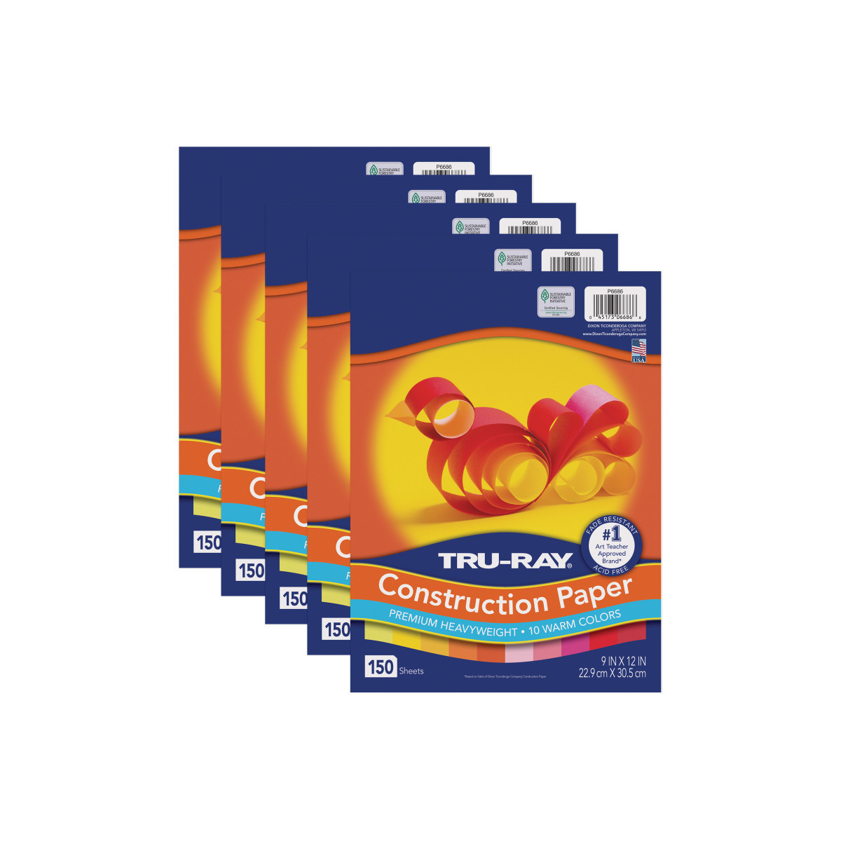 Heavyweight 100% vat-dyed sulphite with longer, stronger fibers. Tru-Ray® Construction Paper is tough enough to take scoring, folding and curling without cracking and tearing. Its superior fade-resistance keeps projects brighter and fresher longer. Colors include: Orange, Yellow, Electric Orange, Pink, Shocking Pink, Light Yellow, Pumpkin, Gold, Festive Red, and Holiday Red. Acid free for less fade. 50% recycled fiber content and recyclable. Measures 9" x 12". Each pack includes 150 sheets. Sold as 5 packs for a total of 750 sheets.