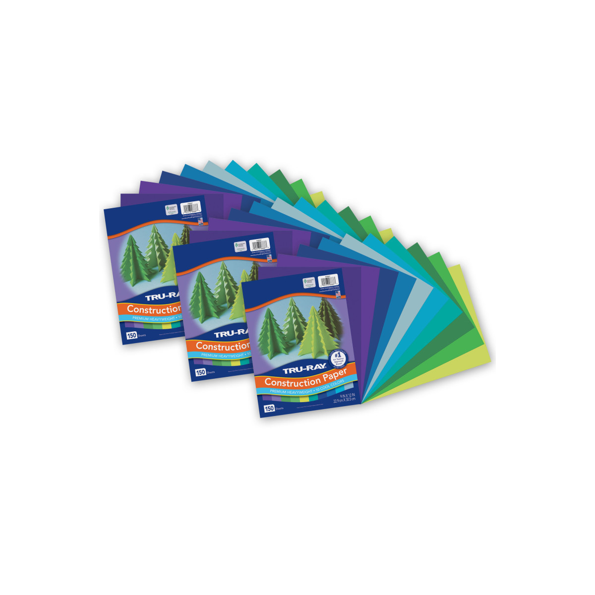 Heavyweight 100% vat-dyed sulphite with longer, stronger fibers. Tru-Ray® Construction Paper is tough enough to take scoring, folding and curling without cracking and tearing. Its superior fade-resistance keeps projects brighter and fresher longer. Colors include: Festive Green, Turquoise, Brilliant Lime, Violet, Holiday Green, Sky Blue, Royal Blue, Purple, Atomic Blue and Blue. Acid free for less fade. Recyclable. Measures 9" x 12". Each pack includes 150 sheets. Sold as 3 packs for a total of 450 sheets.