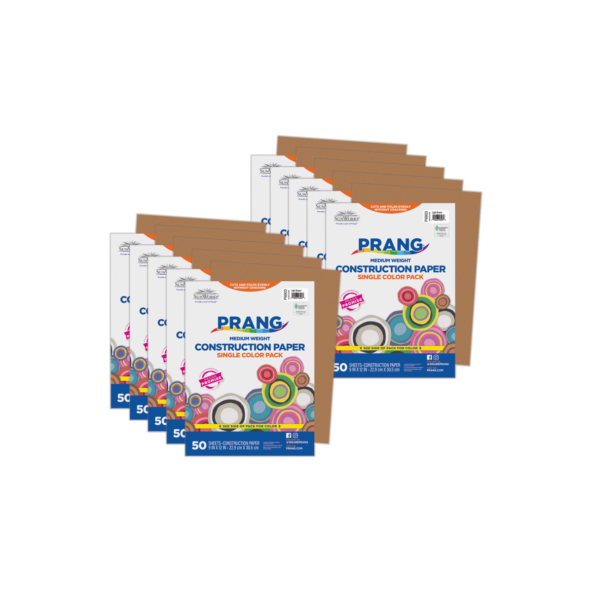 Prang® Medium Weight Groundwood Construction Paper provides the best value in school grade construction paper. It is the perfect solution for school projects and other arts and crafts. It has bright and consistent colors, is slightly textured and cuts and folds evenly without cracking. Recyclable. Measures 9" x 12". Each pack includes 50 sheets. Sold as 10 packs for a total of 500 sheets.