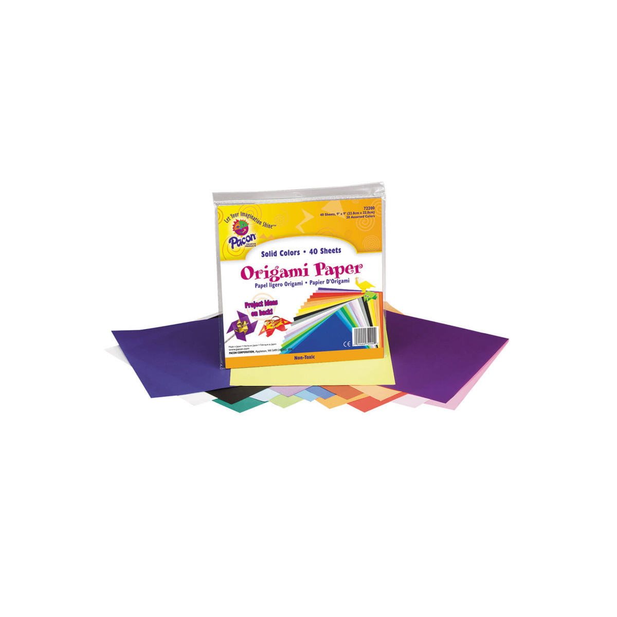 Lightweight paper in 20 assorted colors is ideal for accurate folding. Sheets are colored on one side. All origami packaging includes easy-to-follow instructions for four projects. Recommended for ages 6 and up. Measures 9" x 9". Includes 40 sheets.