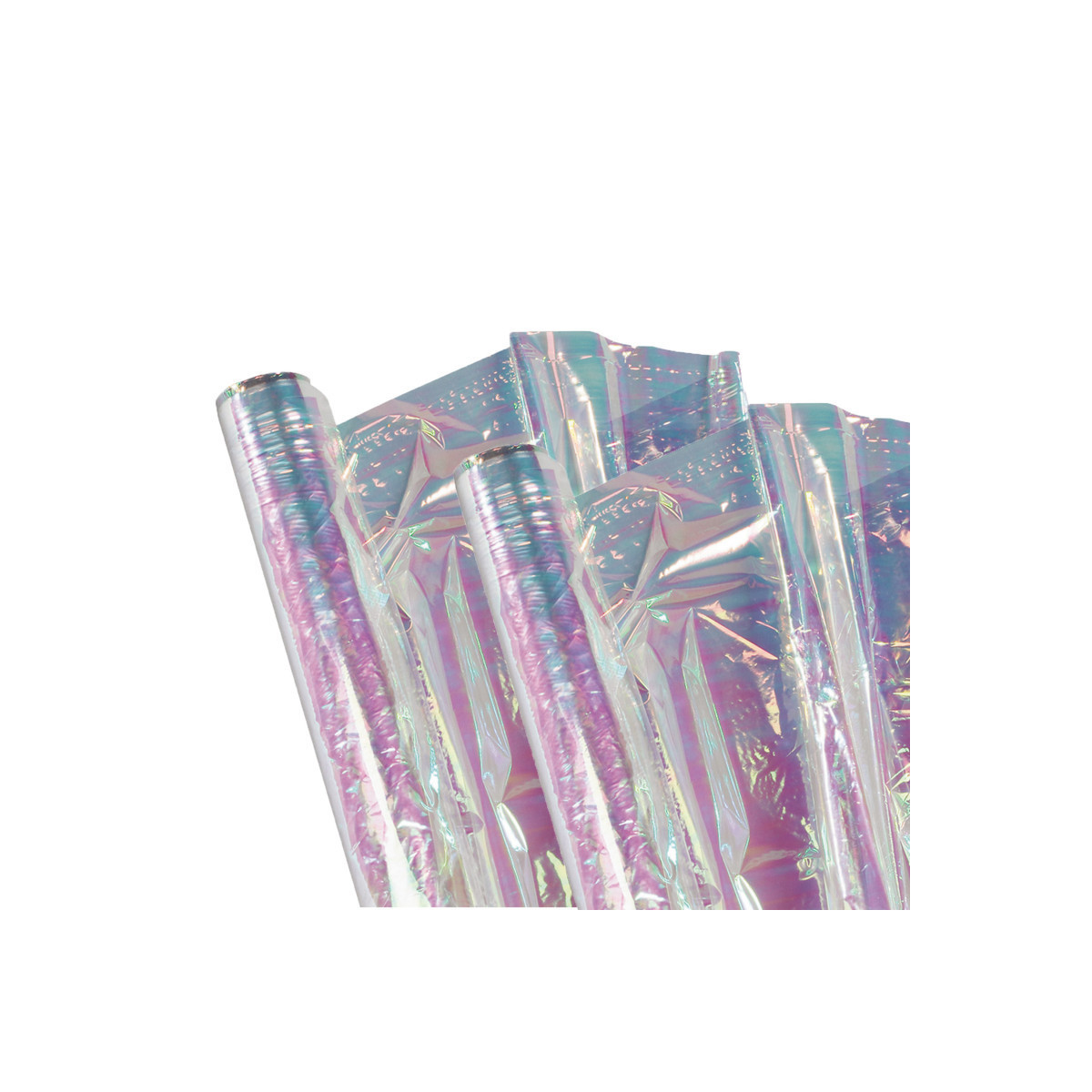 Transparent, glistening, iridescent cellophane is ideal for adding soft color and shimmer to craft projects, gift baskets and more. Perfect for wrapping party favors, making holiday decorations, stagecraft and mask-making. Sparkling clear poly with "mother-of-pearl" appearance wrinkles without ripping, and opalescent colors dance as you move the cellophane around. Roll measures 36" x 12-1/2'. Sold as a pack of 2 rolls.