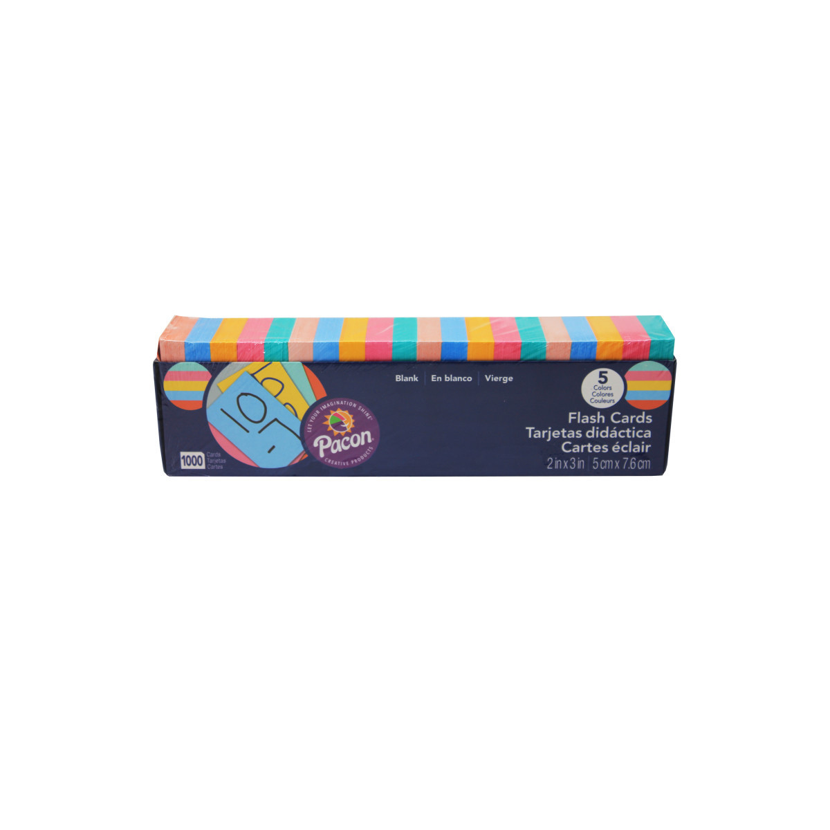 Sturdy unruled tagboard strips are packed in a convenient dispenser box. Great for studying languages, math and more. Assorted five colors include: Canary, Pink, Blue, Green and Orange. Recyclable. Cards measure 3" x 2". Each dispenser box includes 1000 cards.