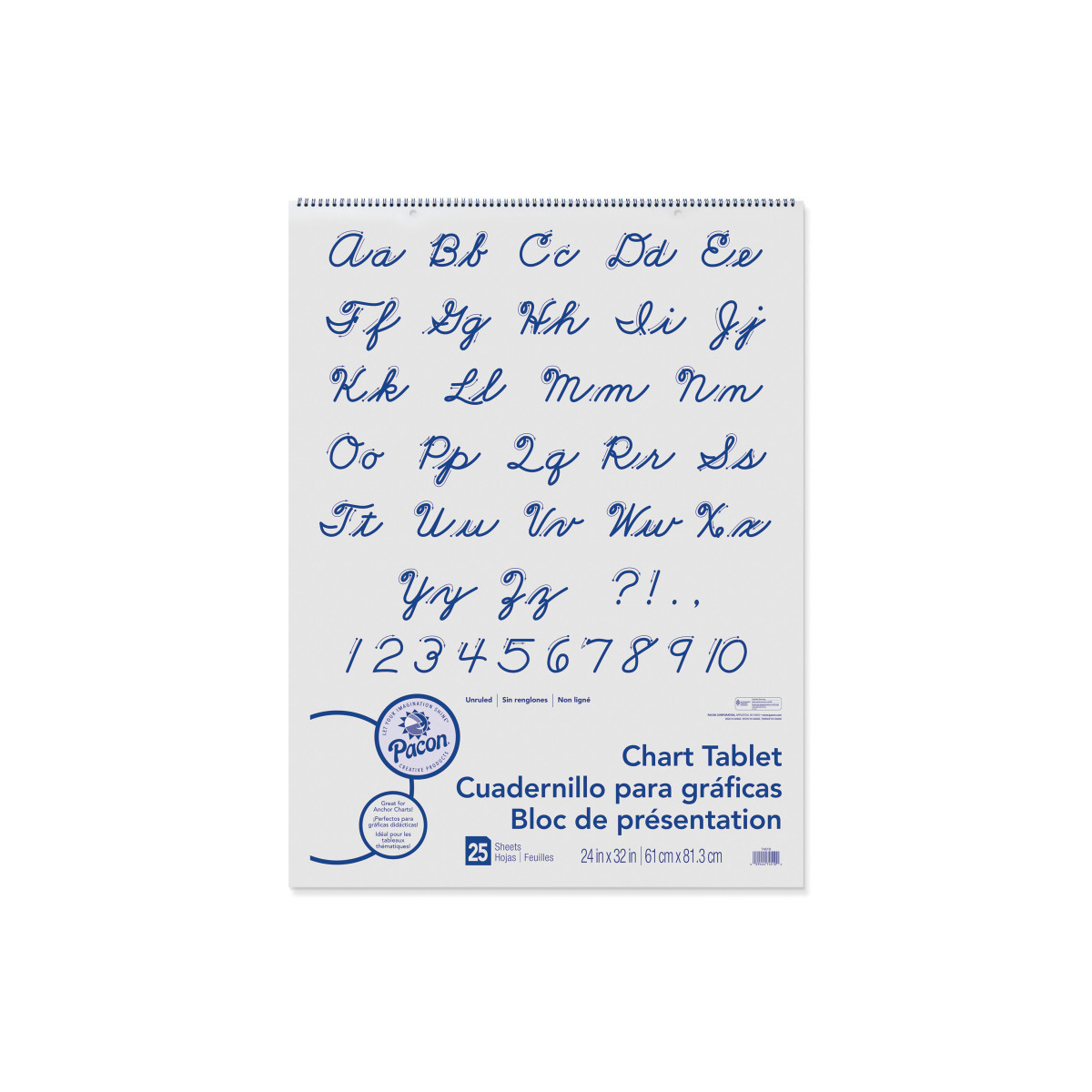 This Chart Tablet features White sulphite bond paper that is spiral bound to stiff covers. It is 2-hole punched for easy hanging. The unruled paper works well for classroom anchor charts, posters and other teaching aids. Measures 24" x 32". Each pad includes 25 sheets.