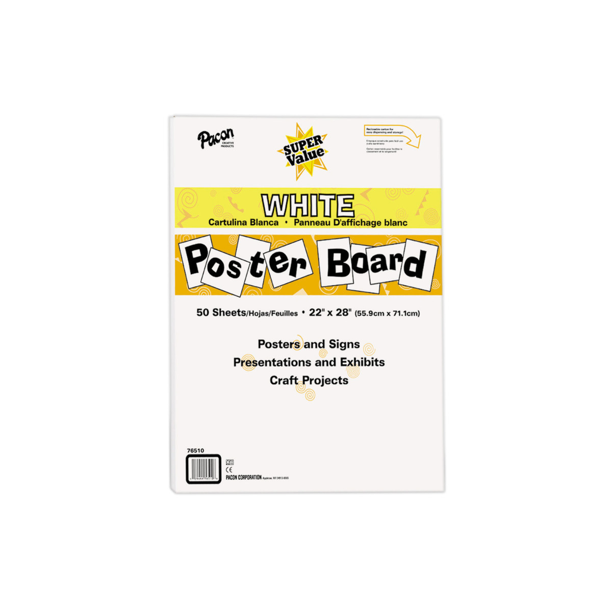 Economy poster board in a reclosable carton for easy storage. A great value for all types of classroom projects. Recycled and recyclable. Measures 22" x 28". Includes 50 sheets.