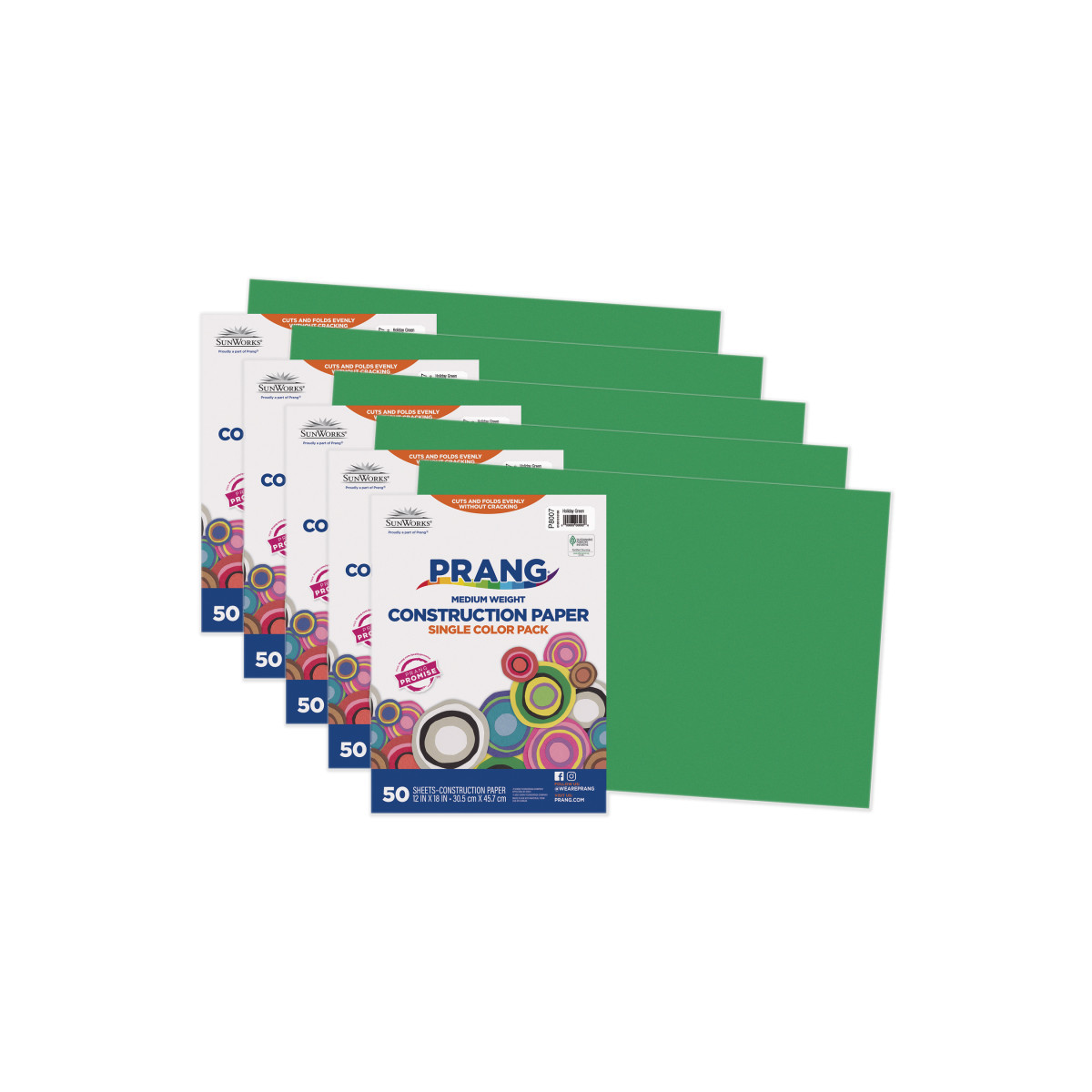 Prang® Medium Weight Groundwood Construction Paper provides the best value in school grade construction paper. It is the perfect solution for school projects and other arts and crafts. It has bright and consistent colors, is slightly textured and cuts and folds evenly without cracking. Recyclable. Measures 12" x 18". Each pack includes 50 sheets. Sold as 5 packs for a total of 250 sheets.