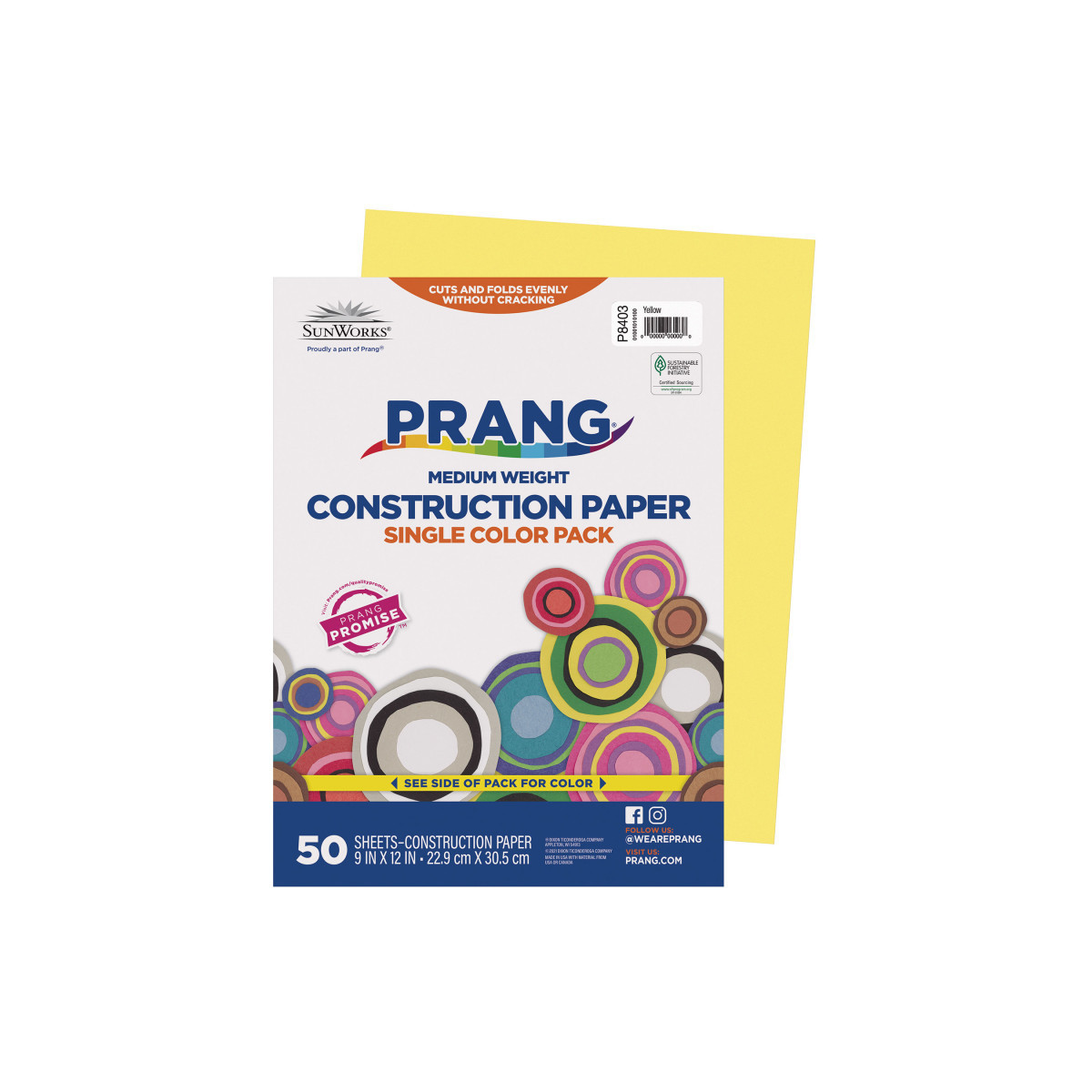 Prang® Medium Weight Groundwood Construction Paper provides the best value in school grade construction paper. It is the perfect solution for school projects and other arts and crafts. It has bright and consistent colors, is slightly textured and cuts and folds evenly without cracking. Recyclable. Measures 9" x 12". Each pack includes 50 sheets.