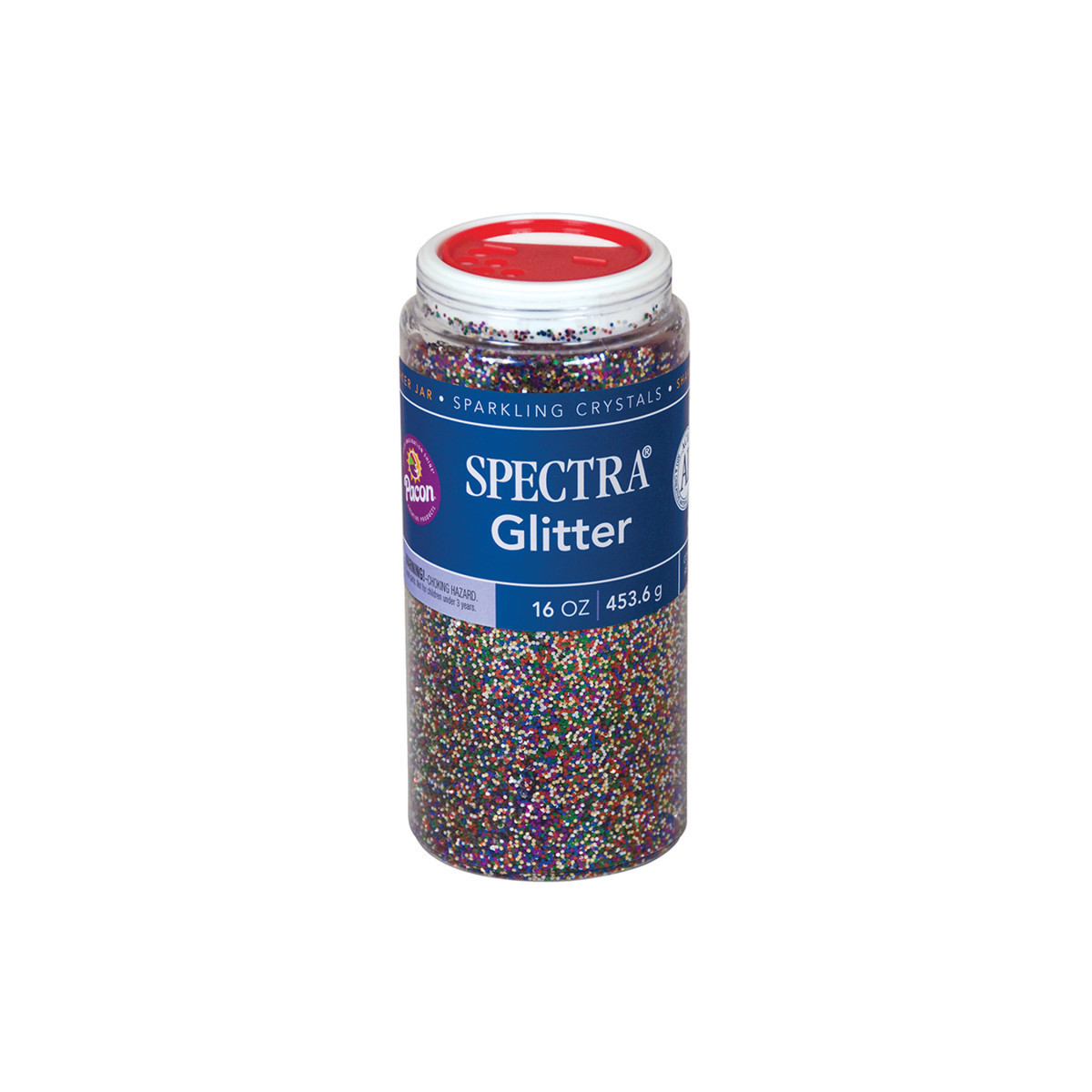 Spectra® Glitter Sparkling Crystals are high quality and are the perfect addition to any art project. To help satisfy a child's innate preference for things that shine, our hexagon shaped plastic glitter crystals (.040 size) are non-toxic and conform to ASTM D 4236. They're packaged in convenient plastic dispensing jars with a variety of slot openings, making it easy to use without a lot of mess! Each jar includes 1 lb. of glitter.