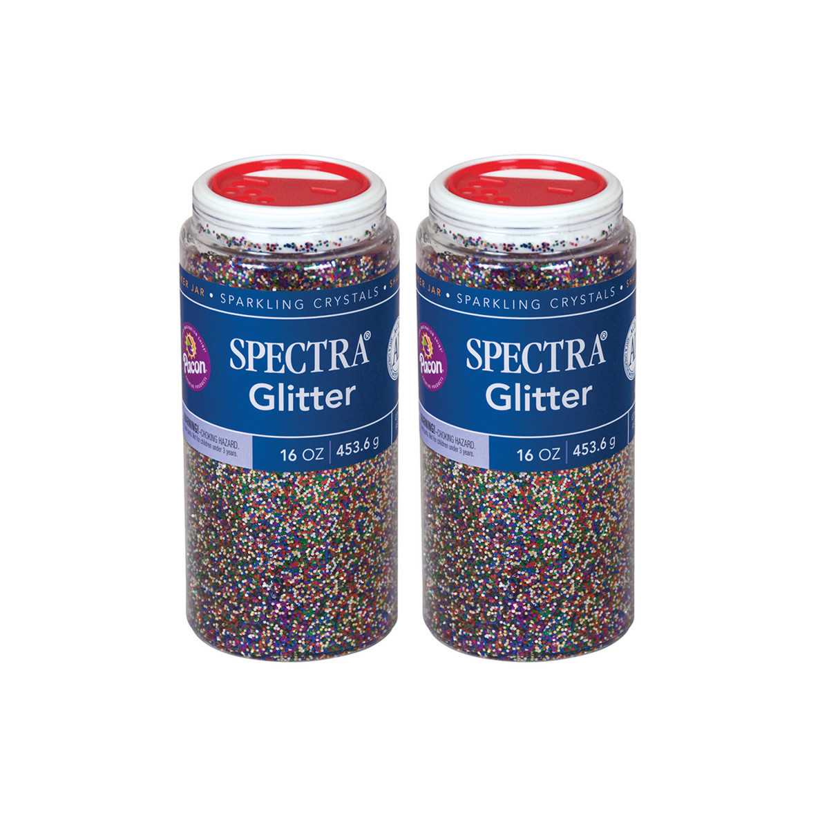 Spectra® Glitter Sparkling Crystals are high quality and are the perfect addition to any art project. To help satisfy a child's innate preference for things that shine, our hexagon shaped plastic glitter crystals (.040 size) are non-toxic and conform to ASTM D 4236. They're packaged in convenient plastic dispensing jars with a variety of slot openings, making it easy to use without a lot of mess! Each jar includes 1 lb. of glitter. Sold as a pack of 2 jars.