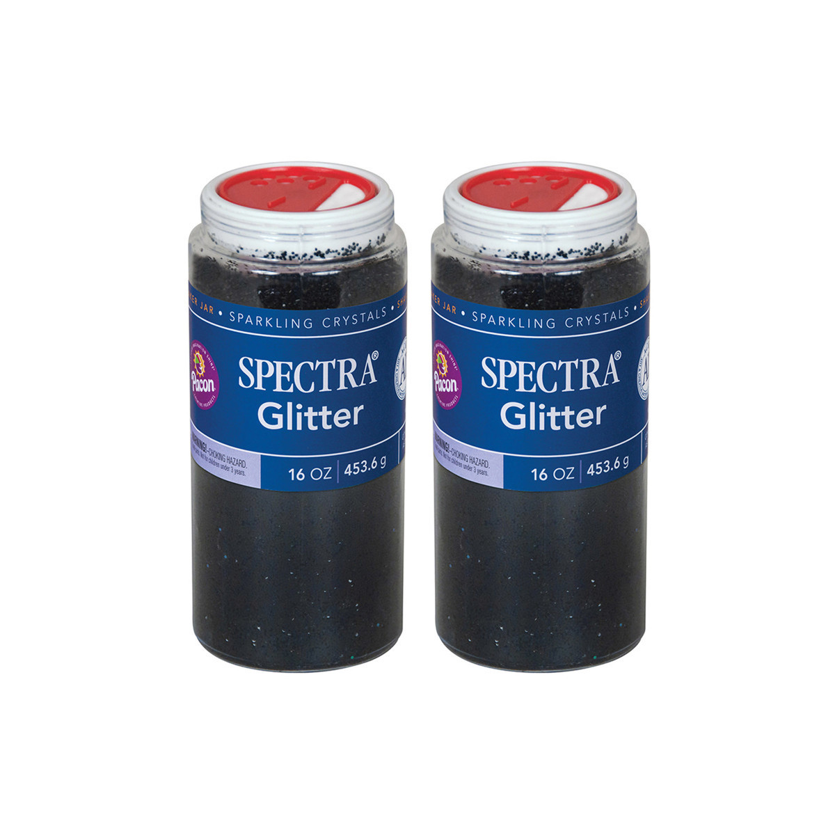 Spectra® Glitter Sparkling Crystals are high quality and are the perfect addition to any art project. To help satisfy a child's innate preference for things that shine, our hexagon shaped plastic glitter crystals (.040 size) are non-toxic and conform to ASTM D 4236. They're packaged in convenient plastic dispensing jars with a variety of slot openings, making it easy to use without a lot of mess! Each jar includes 1 lb. of glitter. Sold as a pack of 2 jars.