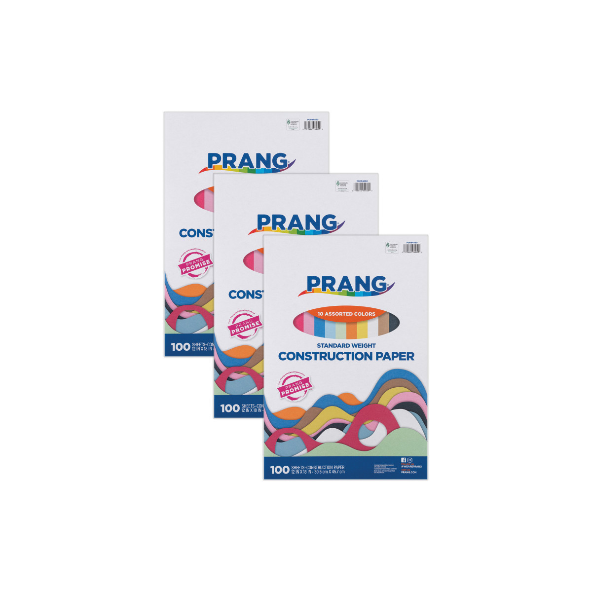 Prang® 10 color assortment is perfect for beginner arts and crafts, and ideal for young children. Colors include: White, Sky Blue, Blue, Pink, Scarlet, Orange, Brown, Yellow, Green, and Black. Works great for cutting, pasting, doodling and folding. Recyclable. Measures 12" x 18". Each pack includes 100 sheets. Sold as 3 packs for a total of 300 sheets.