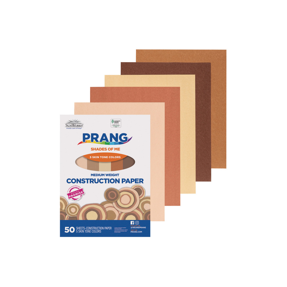 Prang® Medium Weight Groundwood Construction Paper has five creative shades for multicultural curriculums. This art and craft paper reflects the rich variety of skin color found around the world. Practical all-purpose sheets with excellent strength, brightness and durability. Recyclable. Measures 9" x 12". Each pack includes 50 sheets.