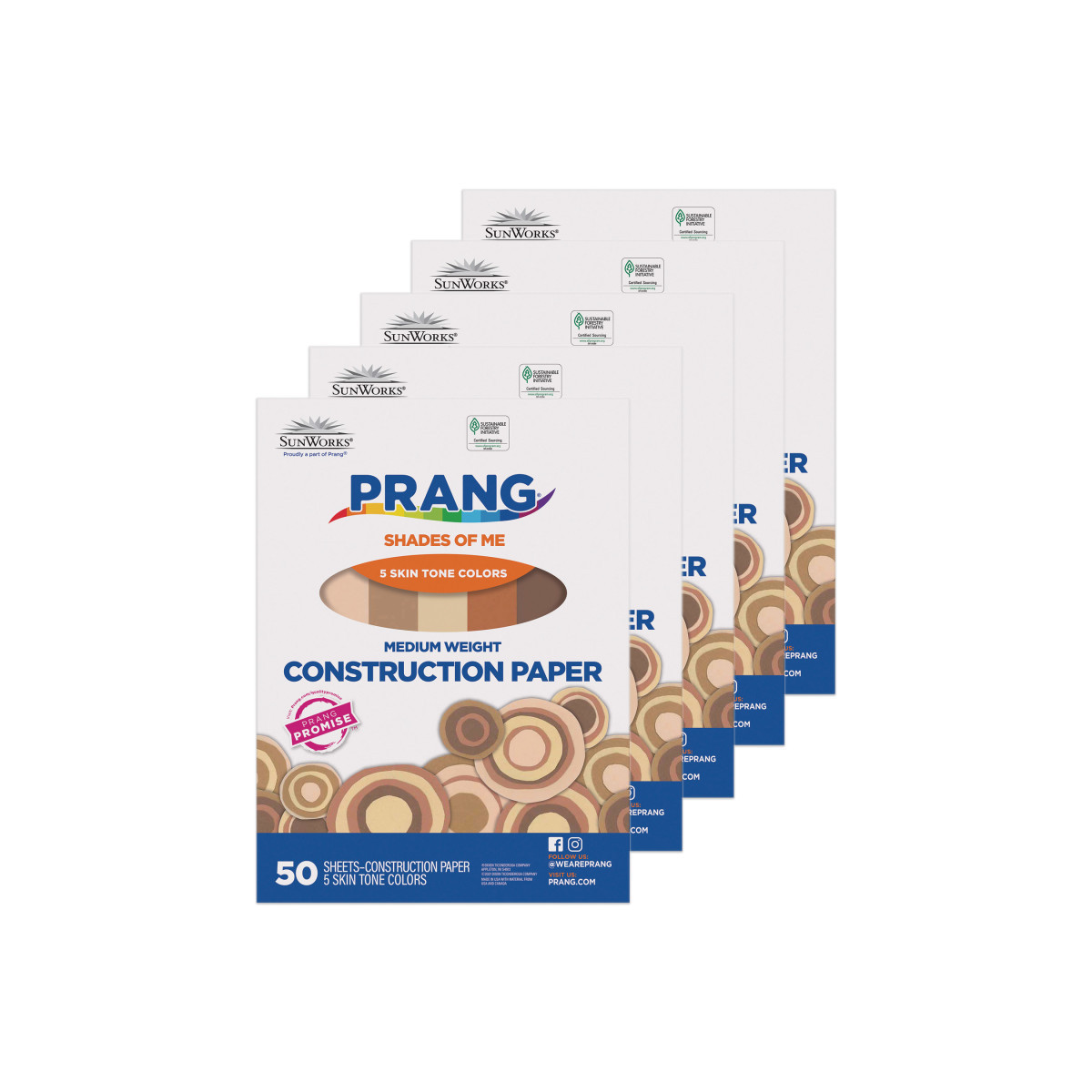 Prang® Medium Weight Groundwood Construction Paper has five creative shades for multicultural curriculums. This art and craft paper reflects the rich variety of skin color found around the world. Practical all-purpose sheets with excellent strength, brightness and durability. Recyclable. Measures 9" x 12". Each pack includes 50 sheets. Sold as 5 packs for a total of 250 sheets.