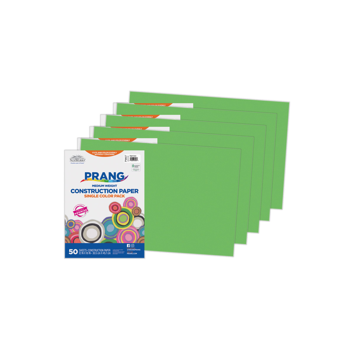 Prang® Medium Weight Groundwood Construction Paper provides the best value in school grade construction paper. It is the perfect solution for school projects and other arts and crafts. It has bright and consistent colors, is slightly textured and cuts and folds evenly without cracking. Recyclable. Measures 12" x 18". Each pack includes 50 sheets. Sold as 5 packs for a total of 250 sheets.