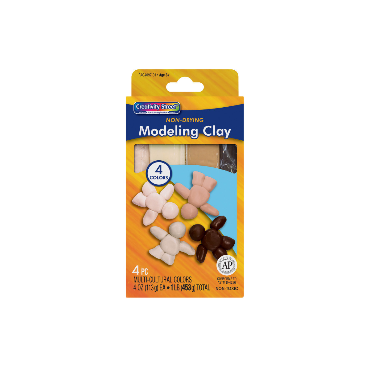 Permanently soft modeling clay is great for artists of all ages. Colors can be blended to create new colors! This four color multicultural assortment that includes 1/4 lb. sticks in each color and comes in a total of 1 lb. It is wrapped in poly and featured in a retail-friendly box with product viewing window. All modeling clays are non-toxic.