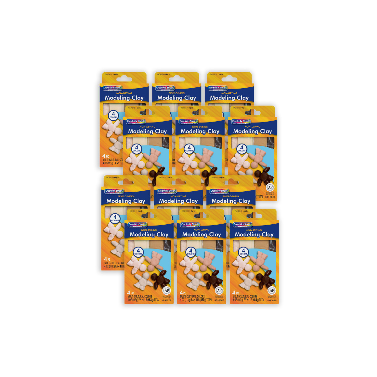 Permanently soft modeling clay is great for artists of all ages. Colors can be blended to create new colors! Each four color multicultural assortment pack includes 1/4 lb. sticks in each color and comes in a total of 1 lb. It is wrapped in poly and featured in a retail-friendly box with product viewing window. All modeling clays are non-toxic. Sold as 12 packs for a total of 12 lbs.