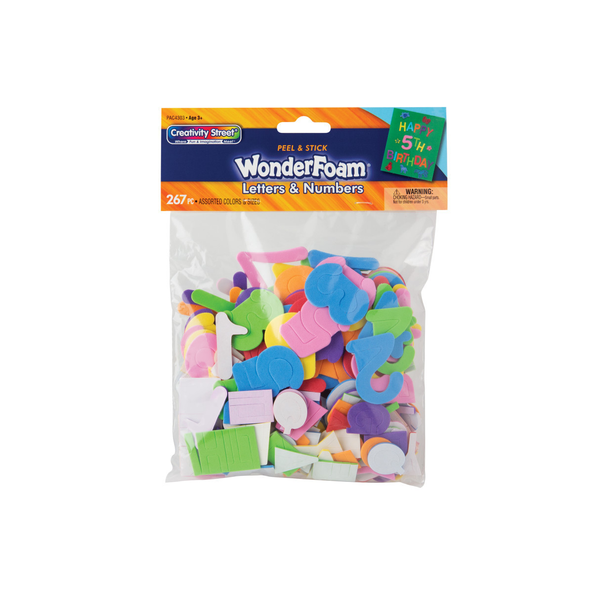 Creativity Street® WonderFoam® Peel & Stick Letters & Numbers are a fun and exciting craft addition for any project! With a variety of letters and numbers in easily manipulated foam that's both durable and lightweight, there's no crafting project that you can't accomplish. Thick enough for small hands to grab easily, these letters and numbers are a great learning tool! Add emphasis to school projects, greeting cards and crafts! This item has seven assorted colors in Red, Yellow, Blue, Orange, Green, Purple and Pink and is broken out as follows: (10) sets of letters A, E, I, O, U, and (7) sets of remaining 21 letters and (7) sets of 10 numbers in 0-9.