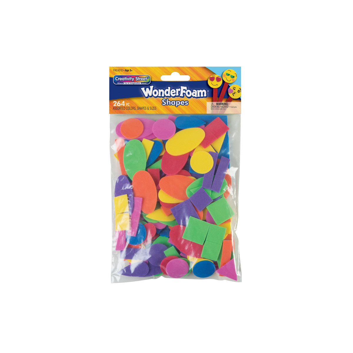 These Wonderfoam® Shapes contain 264 WonderFoam® pieces in assorted sizes, shapes and colors. Foam accepts glue, glitter glue, paints, markers and other art mediums.