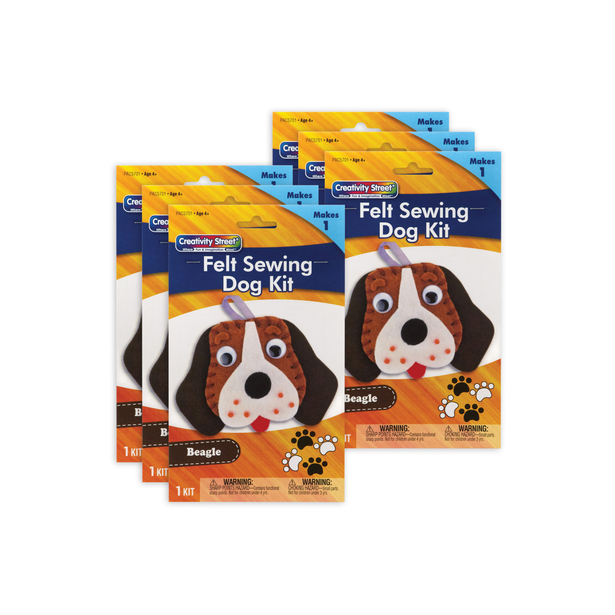 Take a break from screen time with fun and easy Creativity Street® Felt Sewing Dog Kits! This all-in-one solution is the perfect DIY project for kids! Each convenient kit includes everything you need to create your very own adorable Beagle: pre-punched felt & felt shapes, stuffing, wiggle eyes, pom pons, ribbon, string and a plastic needle. All you need is glue and scissors, and you can create your new best friend! Estimated dimensions are 5"W x 5.5"L (including string) x 1"H/D. Please note, finished product dimensions will vary based on individual assembly. Sold as a pack of 6 kits.