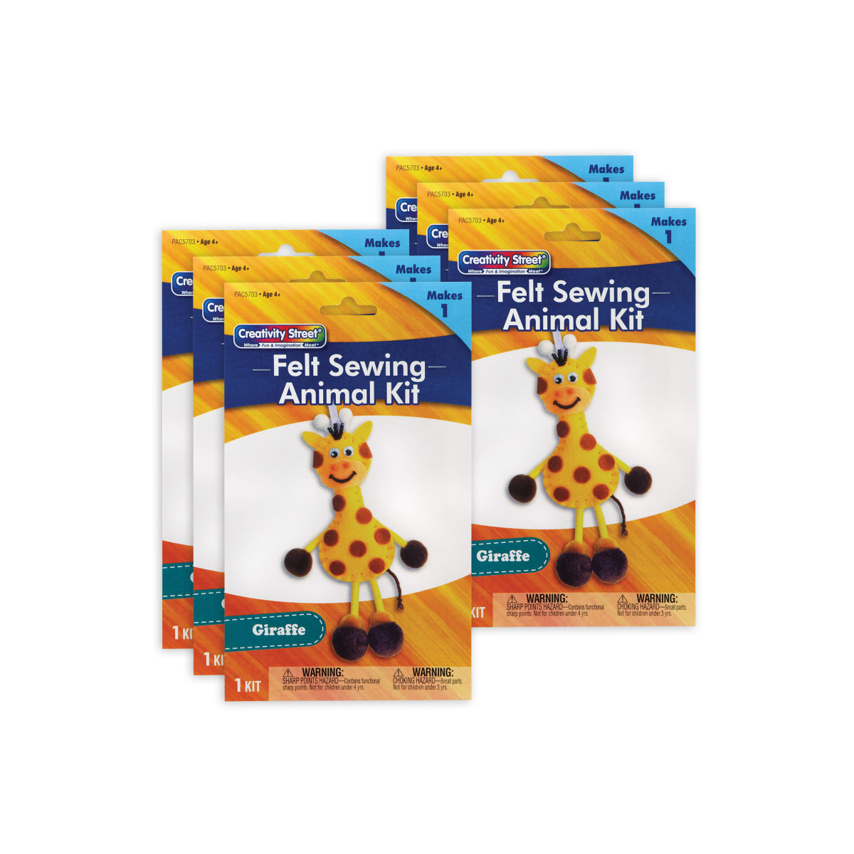 Take a break from screen time with fun and easy Creativity Street® Felt Sewing Animal Kits! This all-in-one solution is the perfect DIY project for kids! Each convenient kit includes everything you need to create your very own adorable Giraffe: pre-punched felt & felt shapes, stuffing, wiggle eyes, chenille stems, pom pons, ribbon, string and a plastic needle. All you need is glue and scissors, and you can create a new, tall friend! Estimated dimensions are 6"W x 11"L (including string) x 0.75"H/D. Please note, finished product dimensions will vary based on individual assembly. Sold as a pack of 6 kits.