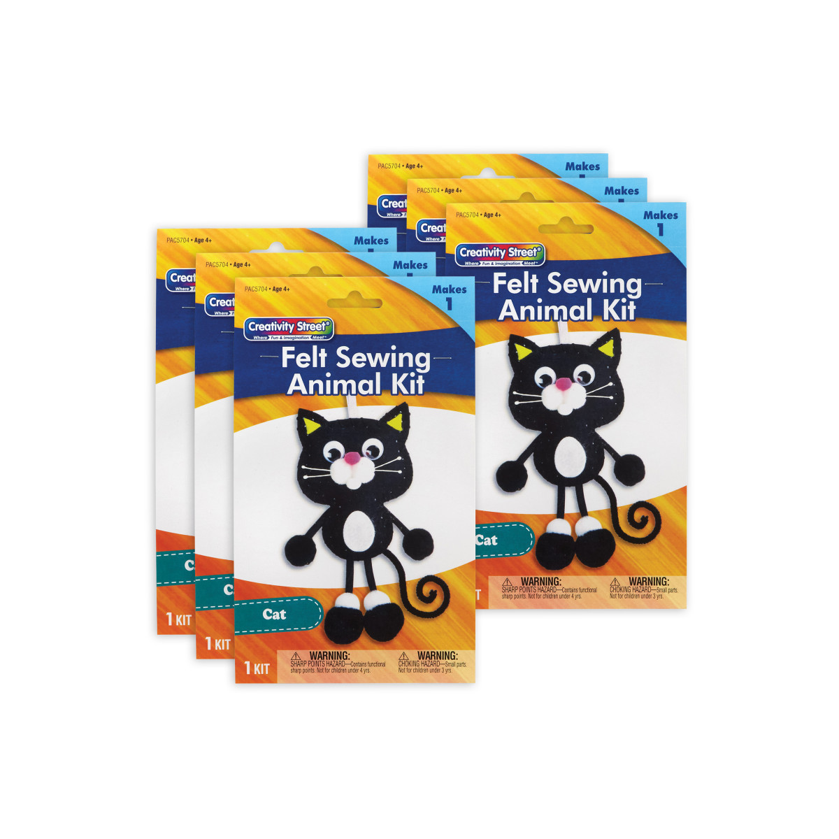 Take a break from screen time with fun and easy Creativity Street® Felt Sewing Animal Kits! This all-in-one solution is the perfect DIY project for kids! Each convenient kit includes everything you need to create your very own adorable Cat: pre-punched felt & felt shapes, stuffing, wiggle eyes, whiskers, chenille stem, pom pons, ribbon, string and a plastic needle. All you need is glue and scissors, and you can create your new feline friend! Estimated dimensions are 4"W x 10.25"L (including string) x 1"H/D. Please note, finished product dimensions will vary based on individual assembly. Sold as a pack of 6 kits.
