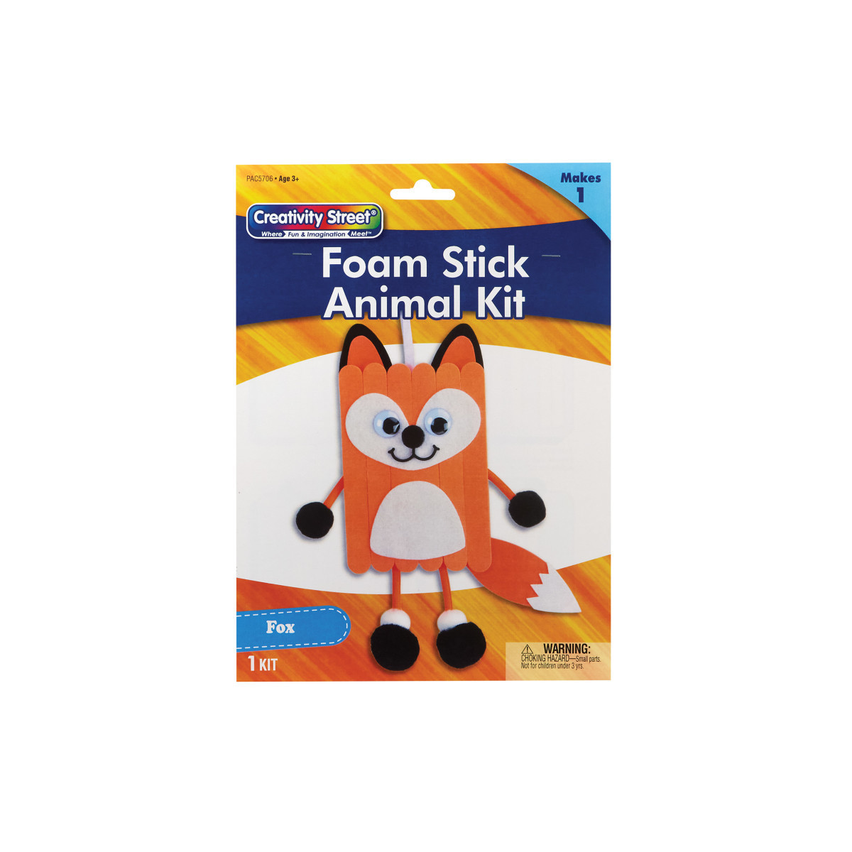 Take a break from screen time with fun and easy Creativity Street® Foam Stick Animal Kits! This all-in-one solution is the perfect DIY project for kids! The convenient kit includes everything you need to create your very own adorable Fox: foam sticks, pre-cut felt & foam shapes, wiggle eyes, pom pons, ribbon and string. All you need is glue and scissors, and you can create a new clever friend! Estimated dimensions are 6.75"W x 11"L (including string) x 1"H/D. Please note, finished product dimensions will vary based on individual assembly.
