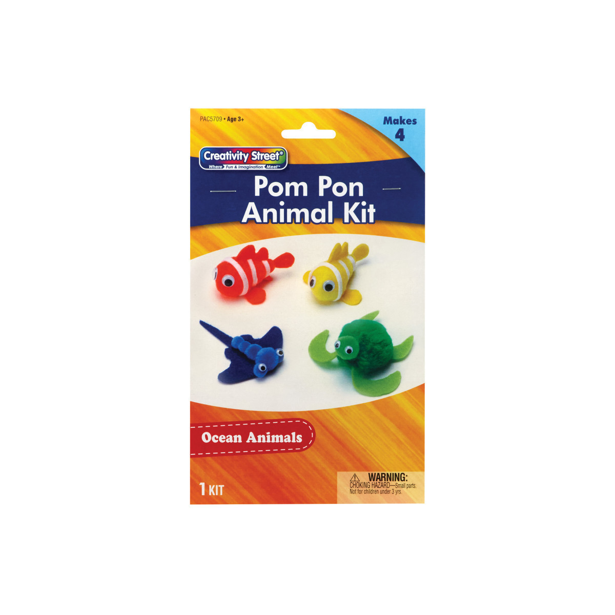 Take a break from screen time with fun and easy Creativity Street® Pom Pon Animal Kits! This all-in-one solution is the perfect DIY project for kids! The convenient kit includes everything you need to create four of your very own Ocean Animals: pre-cut felt shapes, wiggle eyes and pom pons. All you need is glue and scissors, and you can create an underwater ocean family! Please note, finished product dimensions will vary based on individual assembly. Estimated dimensions are as follows: