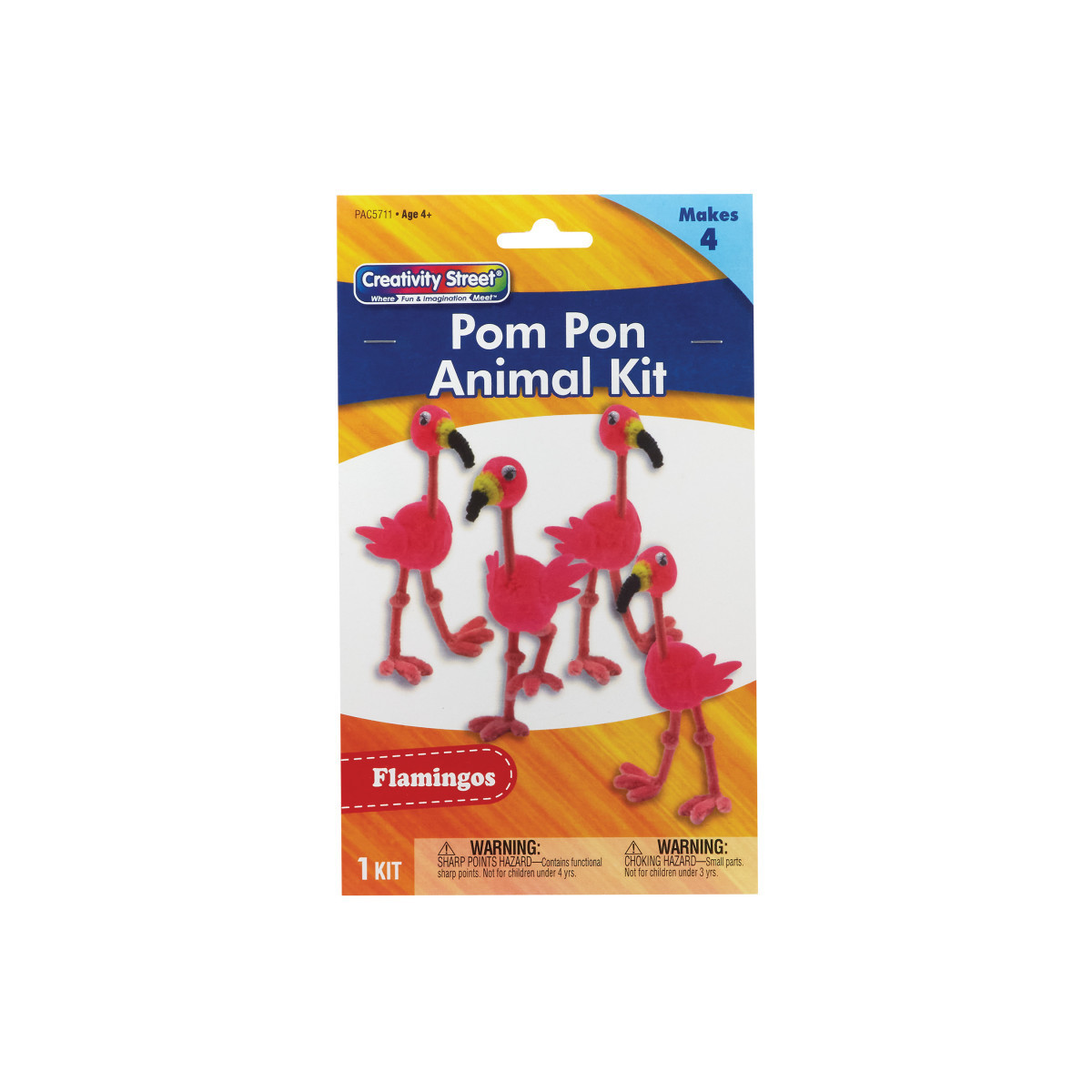 Take a break from screen time with fun and easy Creativity Street® Pom Pon Animal Kits! This all-in-one solution is the perfect DIY project for kids! The convenient kit includes everything you need to create four adorable Flamingos: pre-cut felt shapes, wiggle eyes, chenille stems and pom pons. All you need is glue and scissors, and you can create your own little flamingo flock! Estimated dimensions are 2"W x 2.75"L x 5.25"H. Please note, finished product dimensions will vary based on individual assembly.