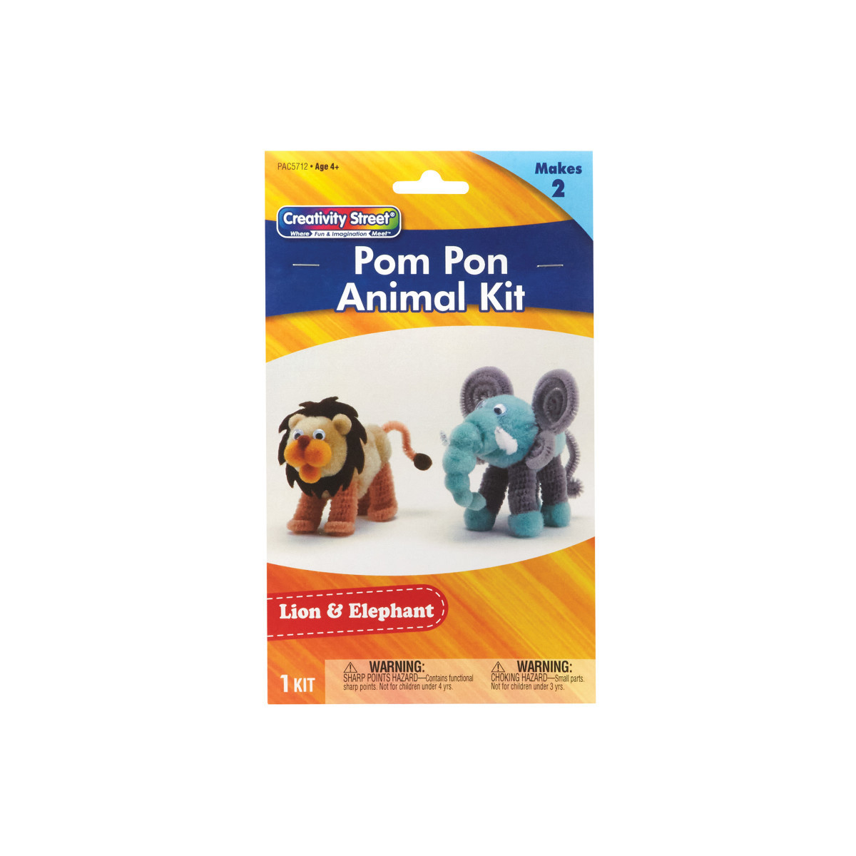 Take a break from screen time with fun and easy Creativity Street® Pom Pon Animal Kits! This all-in-one solution is the perfect DIY project for kids! The convenient kit includes everything you need to create an adorable Lion and Elephant: pre-cut felt shapes, wiggle eyes, chenille stems and pom pons. All you need is glue and scissors, and you can create your own little African safari animals! Estimated dimensions are as follows: Elephant: 3.75"W x 3.5"L x 3.5"H, Lion: 2"W x 4.25"L x 3"H. Please note, finished product dimensions will vary based on individual assembly.