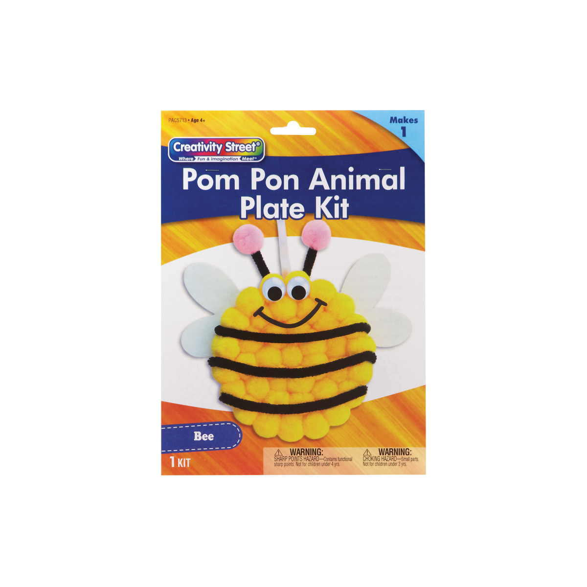 Take a break from screen time with fun and easy Creativity Street® Pom Pon Animal Plate Kits! This all-in-one solution is the perfect DIY project for kids! The convenient kit includes everything you need to create your very own adorable Bee: paper plate, pre-cut foam shapes, wiggle eyes, chenille stems, pom pons and ribbon. All you need is glue and scissors, and you can create this cute busy bee! Estimated dimensions are 9"W x 8.5"L (including string) x 1"H/D. Please note, finished product dimensions will vary based on individual assembly.