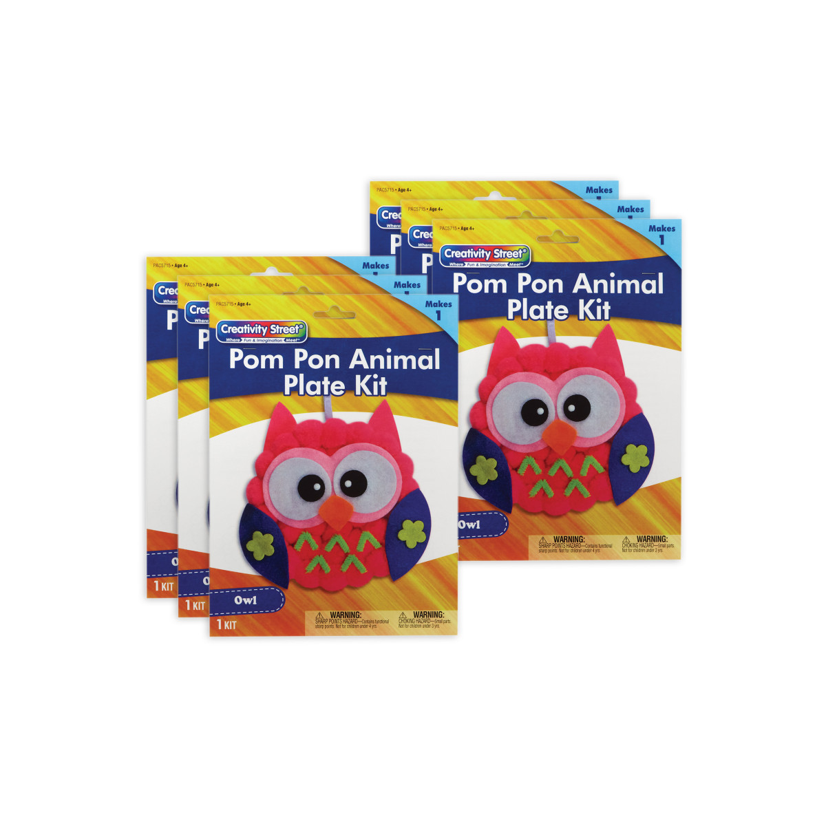 Take a break from screen time with fun and easy Creativity Street® Pom Pon Animal Plate Kits! This all-in-one solution is the perfect DIY project for kids! Each convenient kit includes everything you need to create your very own adorable Owl: paper plate, pre-cut felt shapes, chenille stem, pom pons and ribbon. All you need is glue and scissors, and you can create your own wise little friend! Estimated dimensions are 7"W x 8"L (including string) x 1"H/D. Please note, finished product dimensions will vary based on individual assembly. Sold as a pack of 6 kits.
