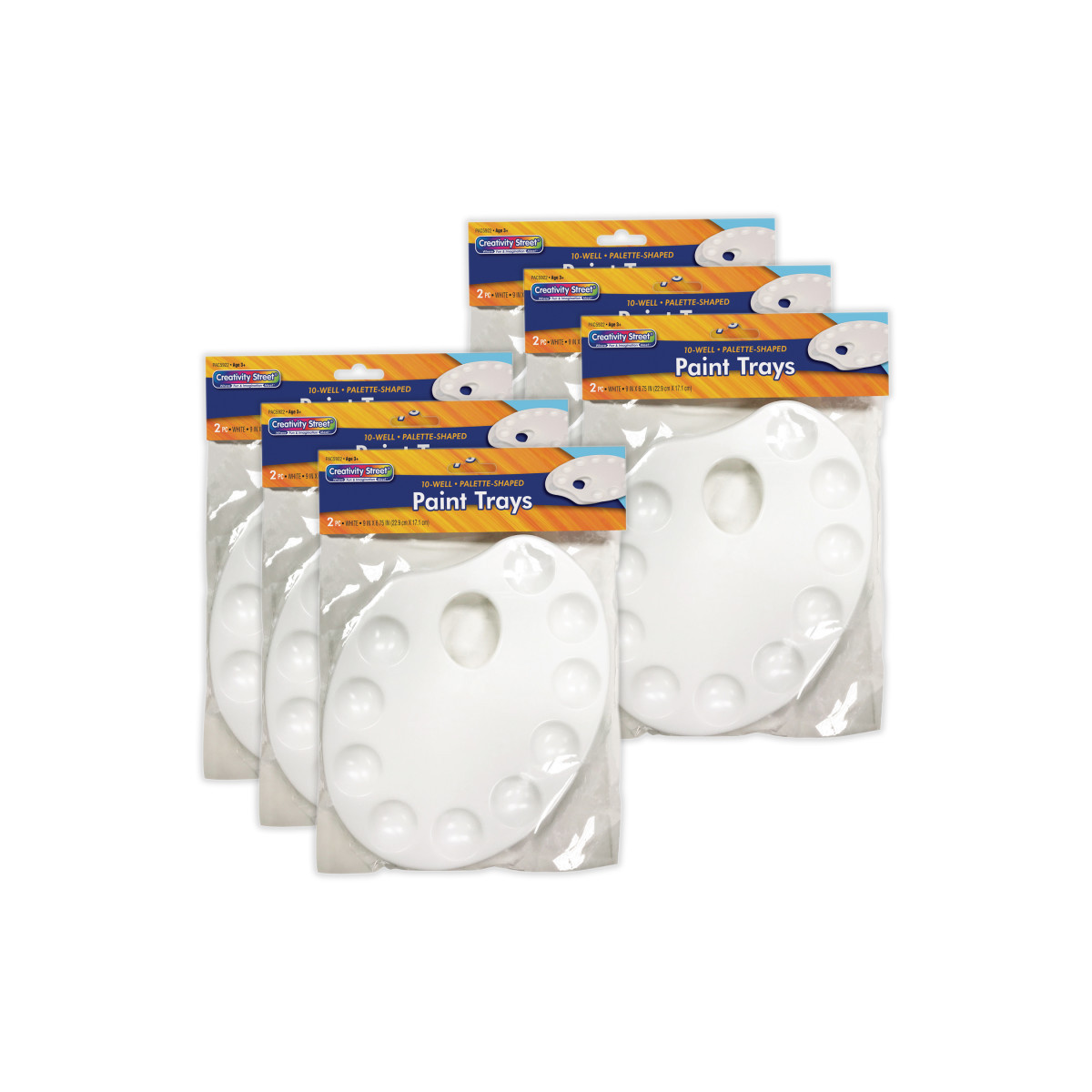 Durable white plastic trays with 10 paint wells each, these Creativity Street® palette-shaped trays glow under black light! Great for arts and crafts activities. Each pack contains 2 trays for multiple artists. Sold as 6 packs for a total of 12 trays.