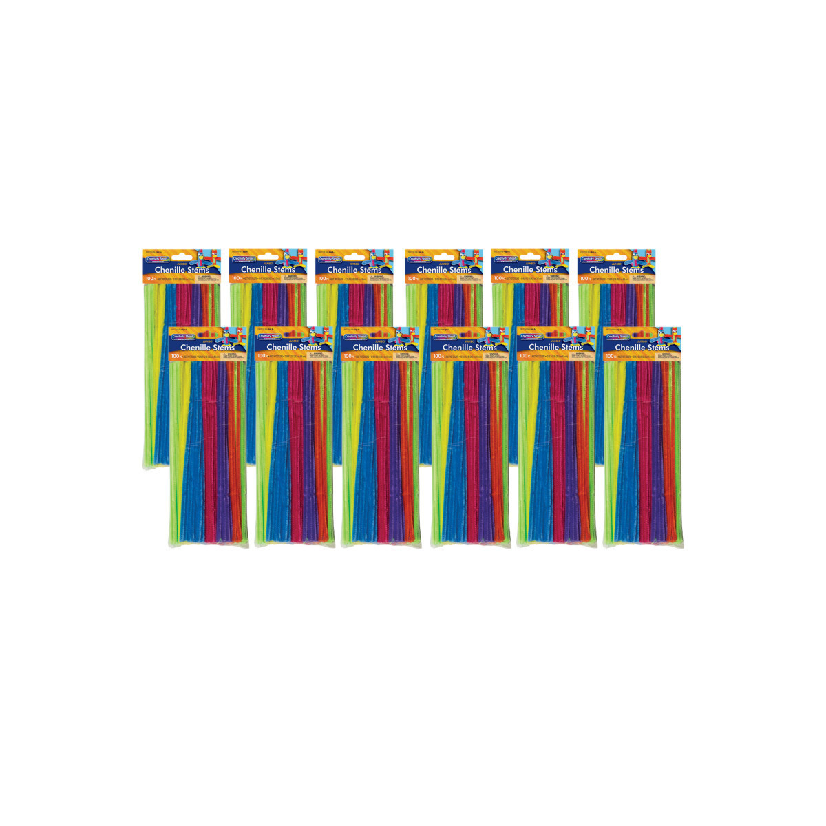 These Jumbo Stems are 12" length by 6 mm diameter, and are available in a variety of assorted colors. Bend and twist to create any shape, animal, or creature imaginable. Add beads, wiggle eyes, and other accessories to embellish your creations. Each pack includes 100 stems. Sold as 12 packs for a total of 1200 stems.