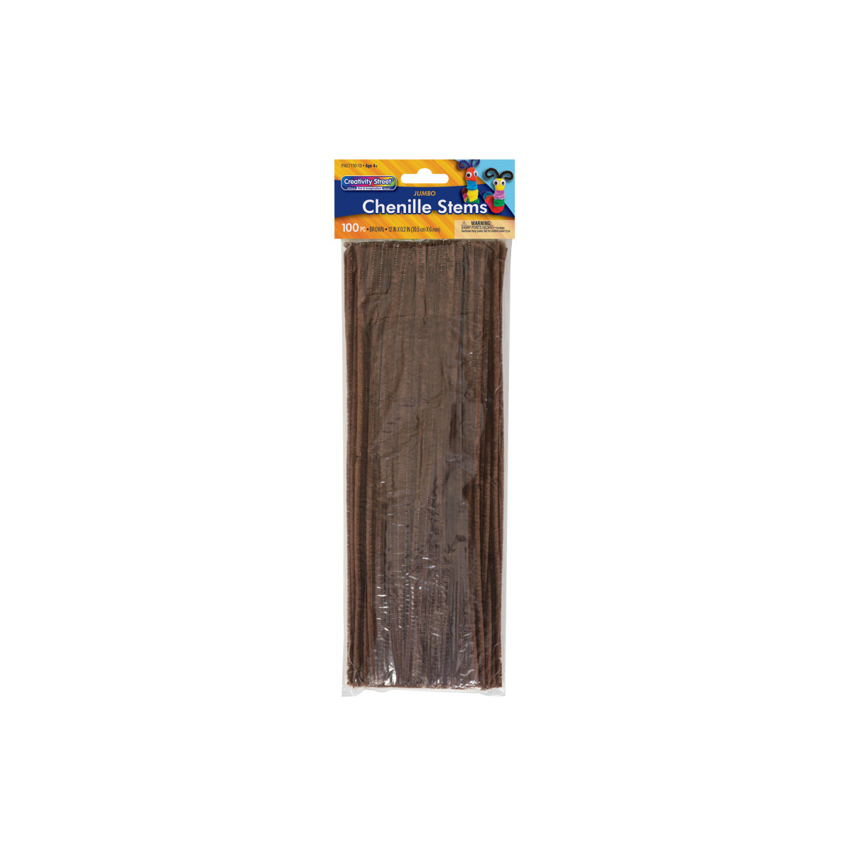 These Jumbo Stems are 12" length by 6 mm diameter, and are available in a variety of assorted colors. Bend and twist to create any shape, animal, or creature imaginable. Add beads, wiggle eyes, and other accessories to embellish your creations. Each pack includes 100 stems.