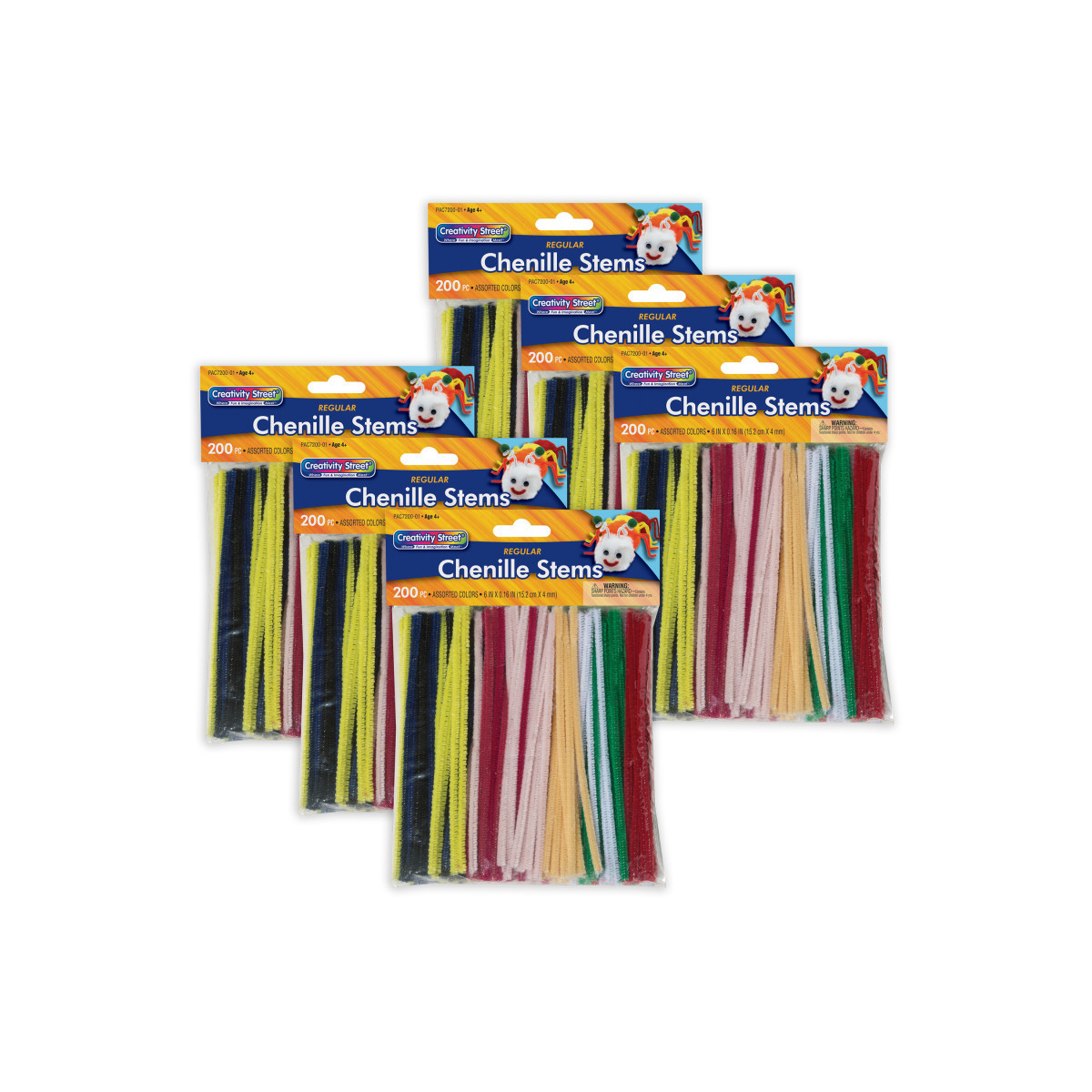 These crush-resistant polyester stems are a 6" length with a 4 mm diameter. They are packed in a poly bag with header. Bend and twist to create any shape, animal, or creature imaginable. Add beads, wiggle eyes, and other accessories to embellish your creations. Perfect for use in the classroom, at home or for craft projects. Each pack includes 200 soft and crush-resistant polyester stems in assorted colors. Sold as 6 packs for a total of 1200 stems.