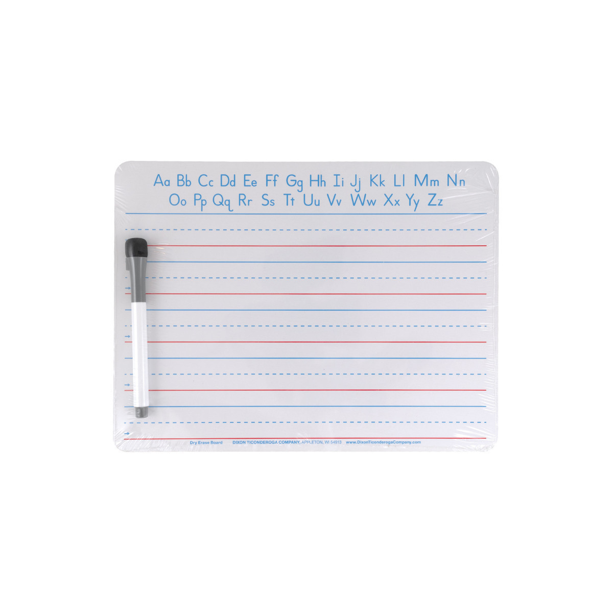Everything you need for practicing penmanship, writing or creating your own masterpiece – all in one handy pack! This sturdy melamine white board set comes complete with a board, dry erase marker and built-in eraser. Perfect for the classroom, home and even travel. This board is double-sided, with 1" x 1/2" x 1/2" ruling on one side and an unruled dry erase surface on the other. Keeps kids engaged and willing to spend their time practicing and using their imagination for creative fun! Board measures 9" x 12".