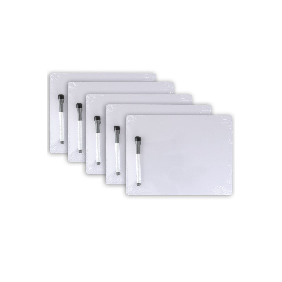 Sold as a pack of 5 dry erase boards, each with marker