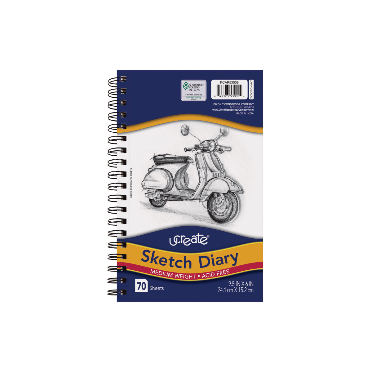 Medium weight sketch diary features bright white paper that is acid-free. Sheets are perforated for final art. Spiral bound on the side. Ideal for dry media. Each diary includes 70 sheets.
